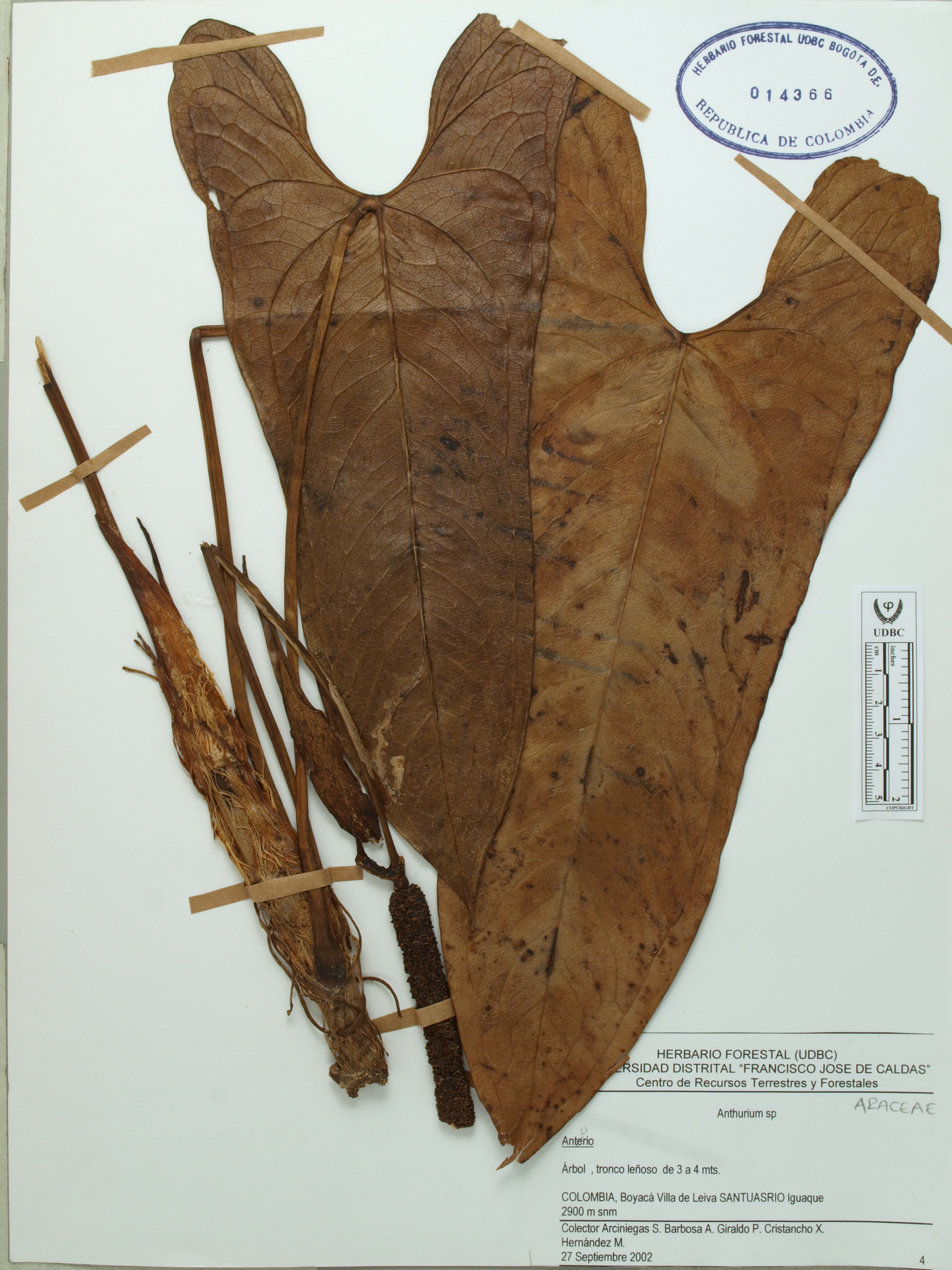 | dc.description | Fotografía del ejemplar Arciniegas, S. 4, determinado como Anthurium sp. | |