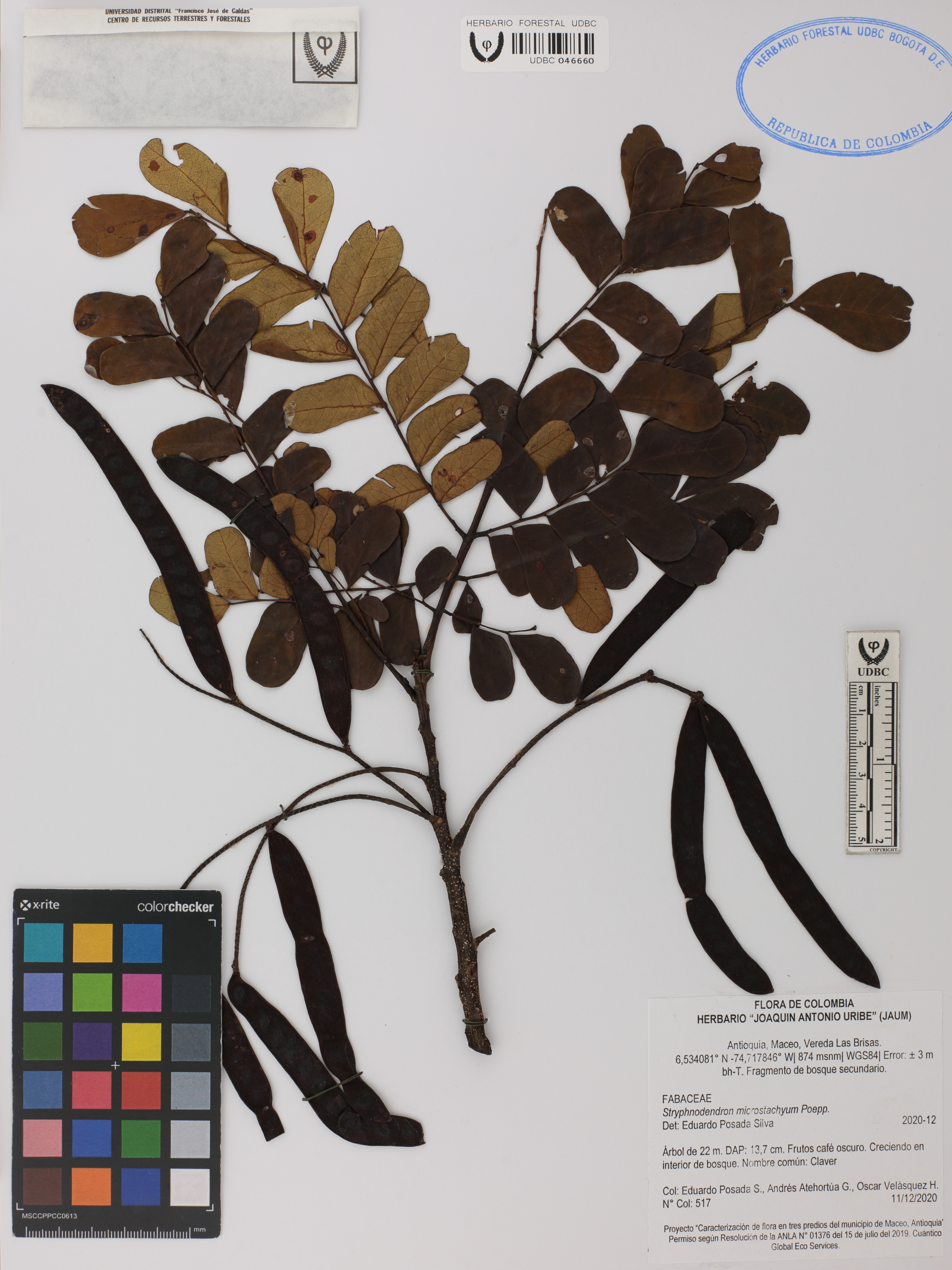 Fotografía del ejemplar Posada-S., E. 517, determinado como Stryphnodendron microstachyum en el año 2020