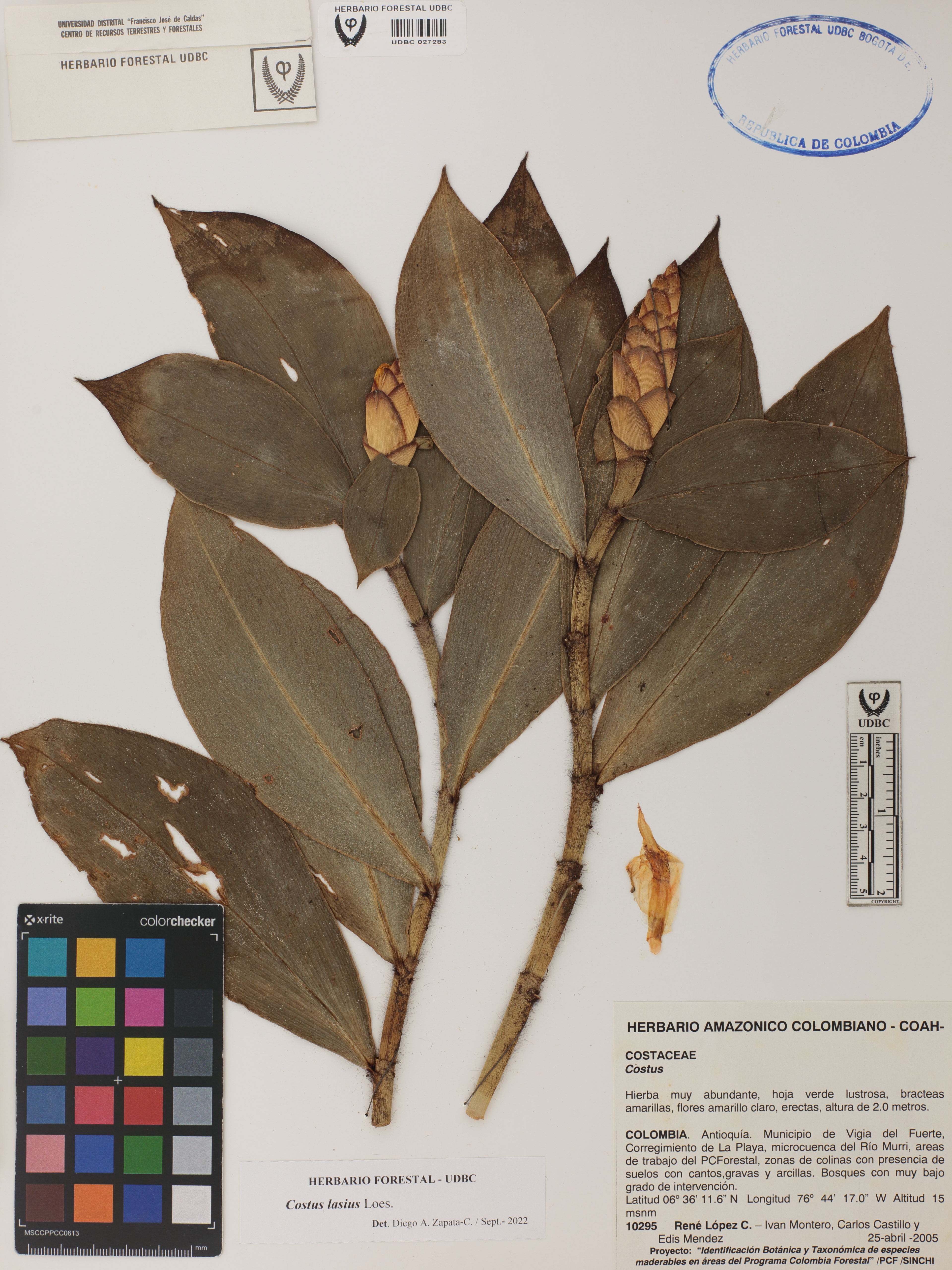 Fotografía del ejemplar López, R. 10295, determinado como Costus lasius en el año 2022