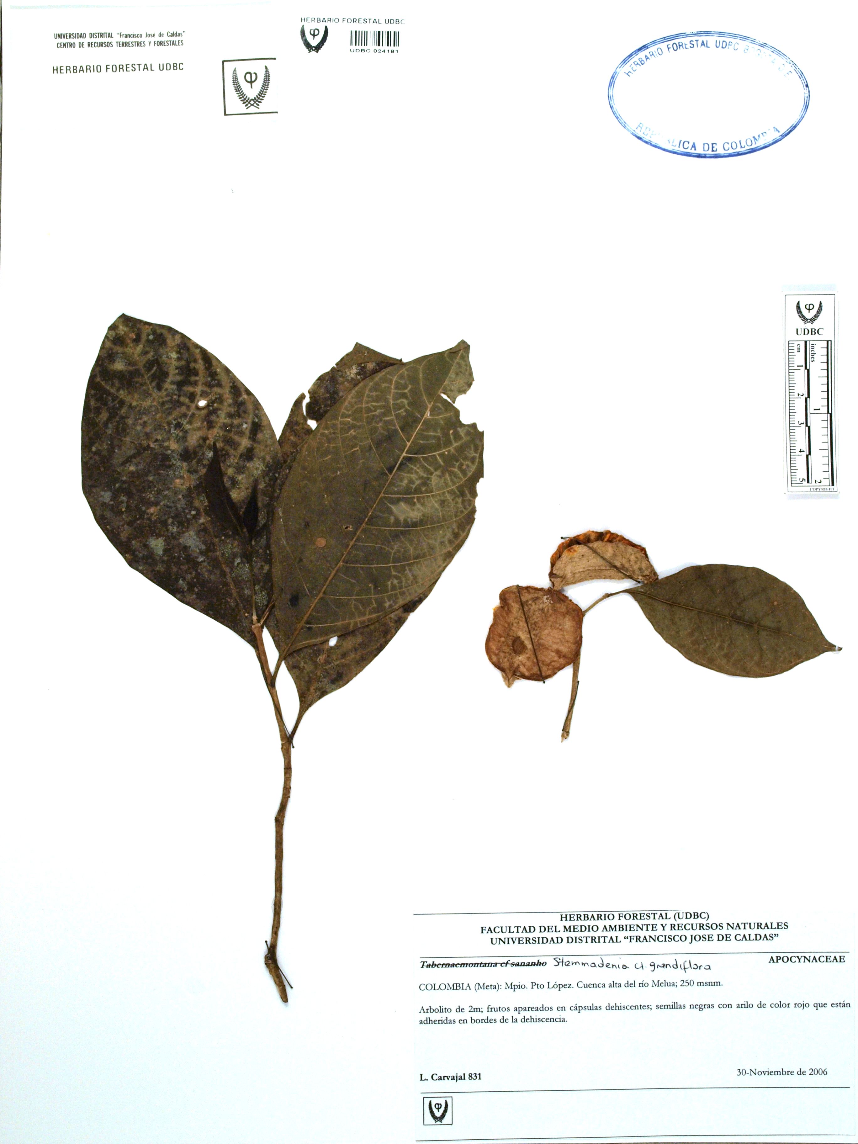 Fotografía del ejemplar Carvajal, L. 831, determinado como Tabernaemontana heterophylla en el año 2017