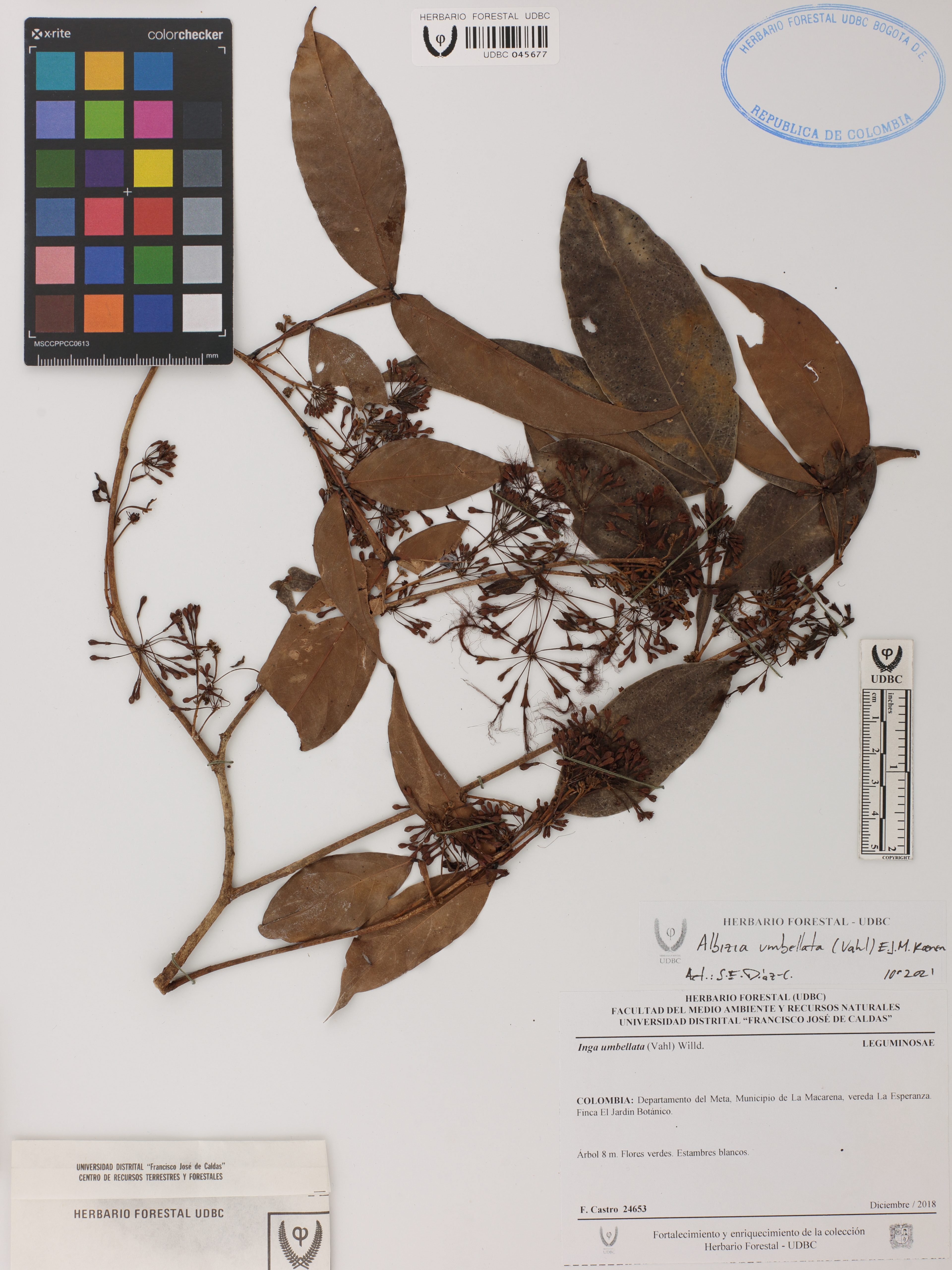 Fotografía del ejemplar Castro, F. 24653, determinado como Albizia umbellata en el año 2018