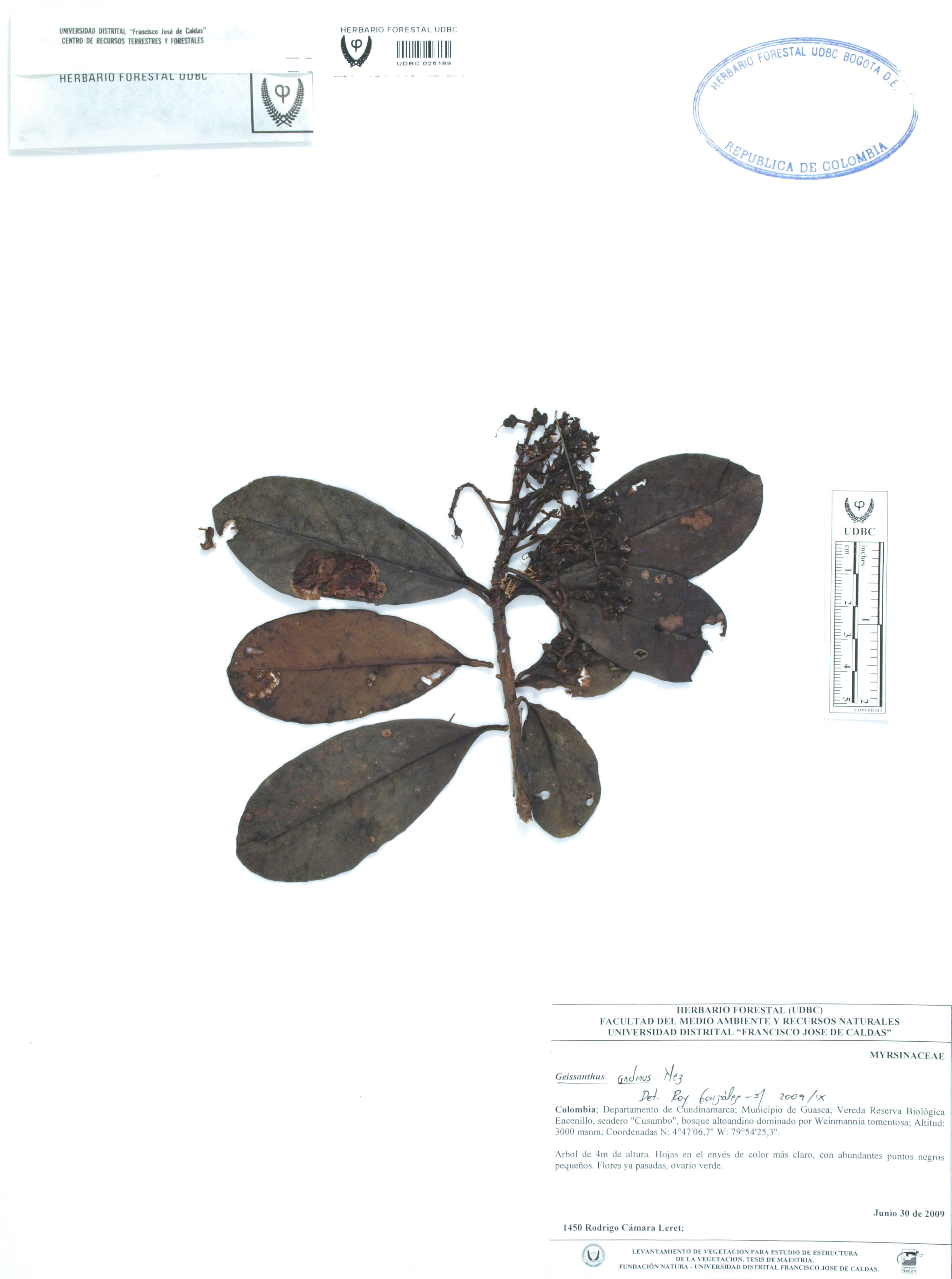 Fotografía del ejemplar Cámara, R. 1450, determinado como Geissanthus andinus en el año 2009