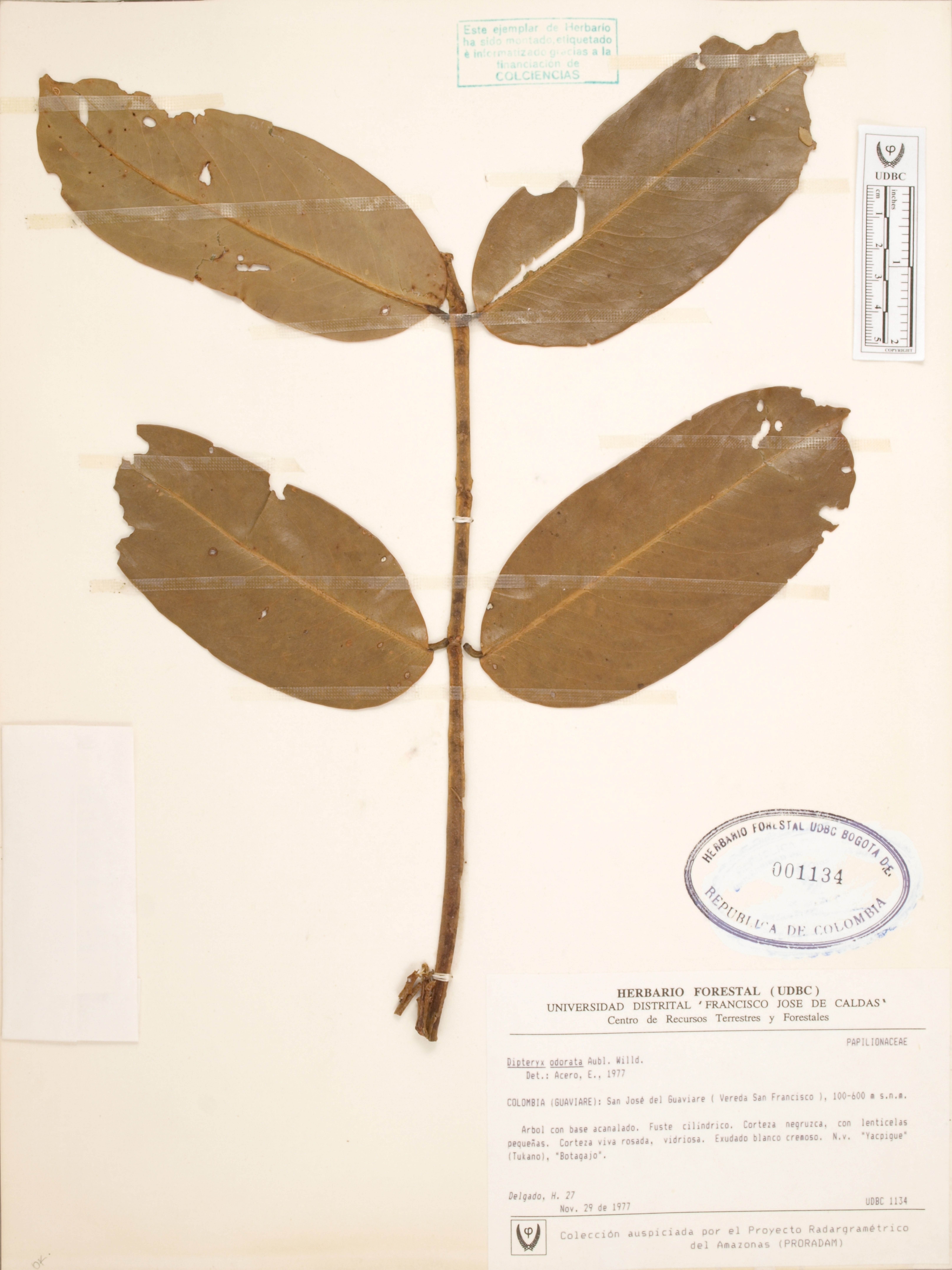 Fotografía del ejemplar Delgado, H. 27, determinado como Dipteryx odorata en el año 1977