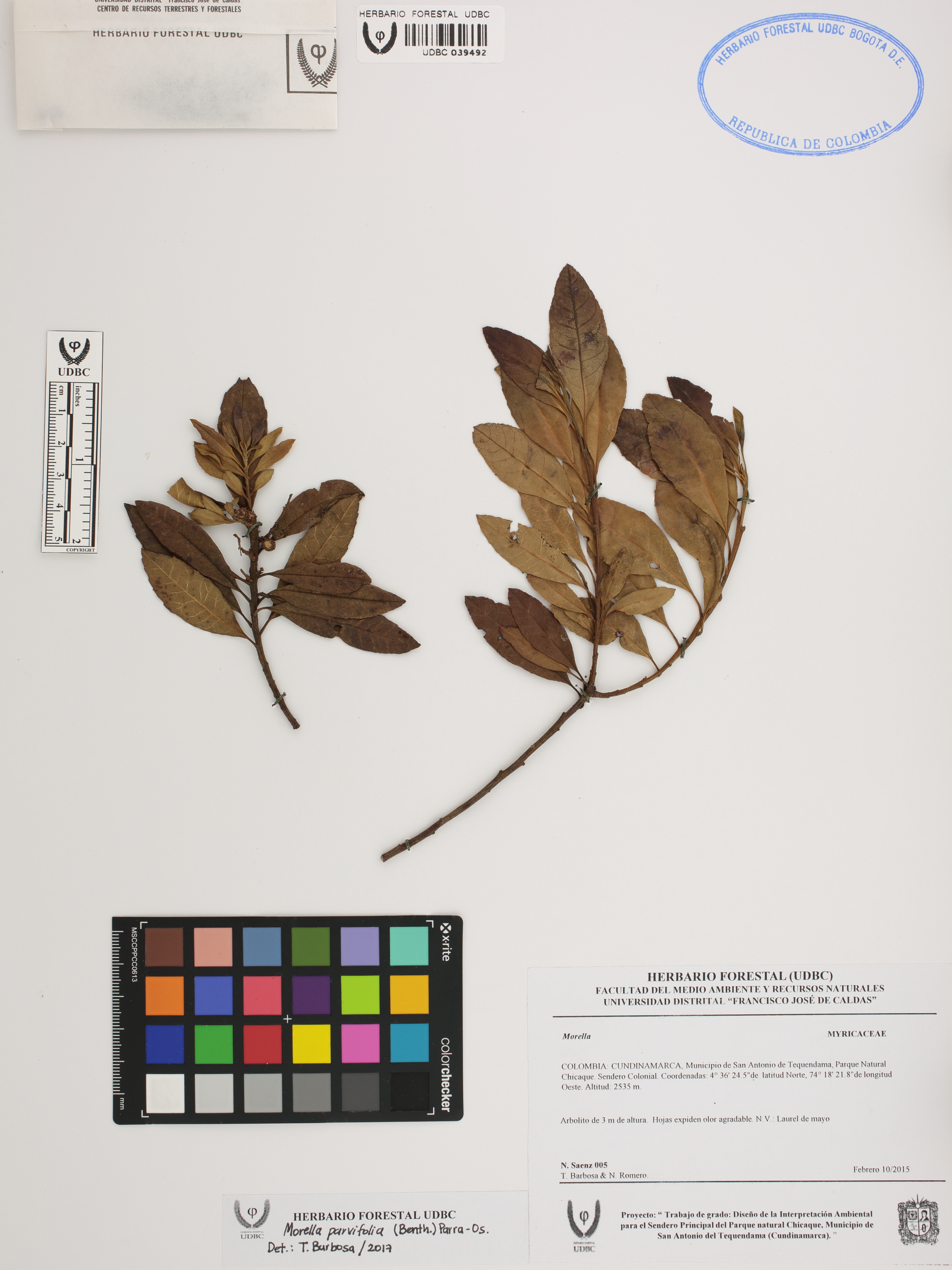 | dc.description | Fotografía del ejemplar Sáenz, N. 5, determinado como Morella parvifolia en el año 2017 | |