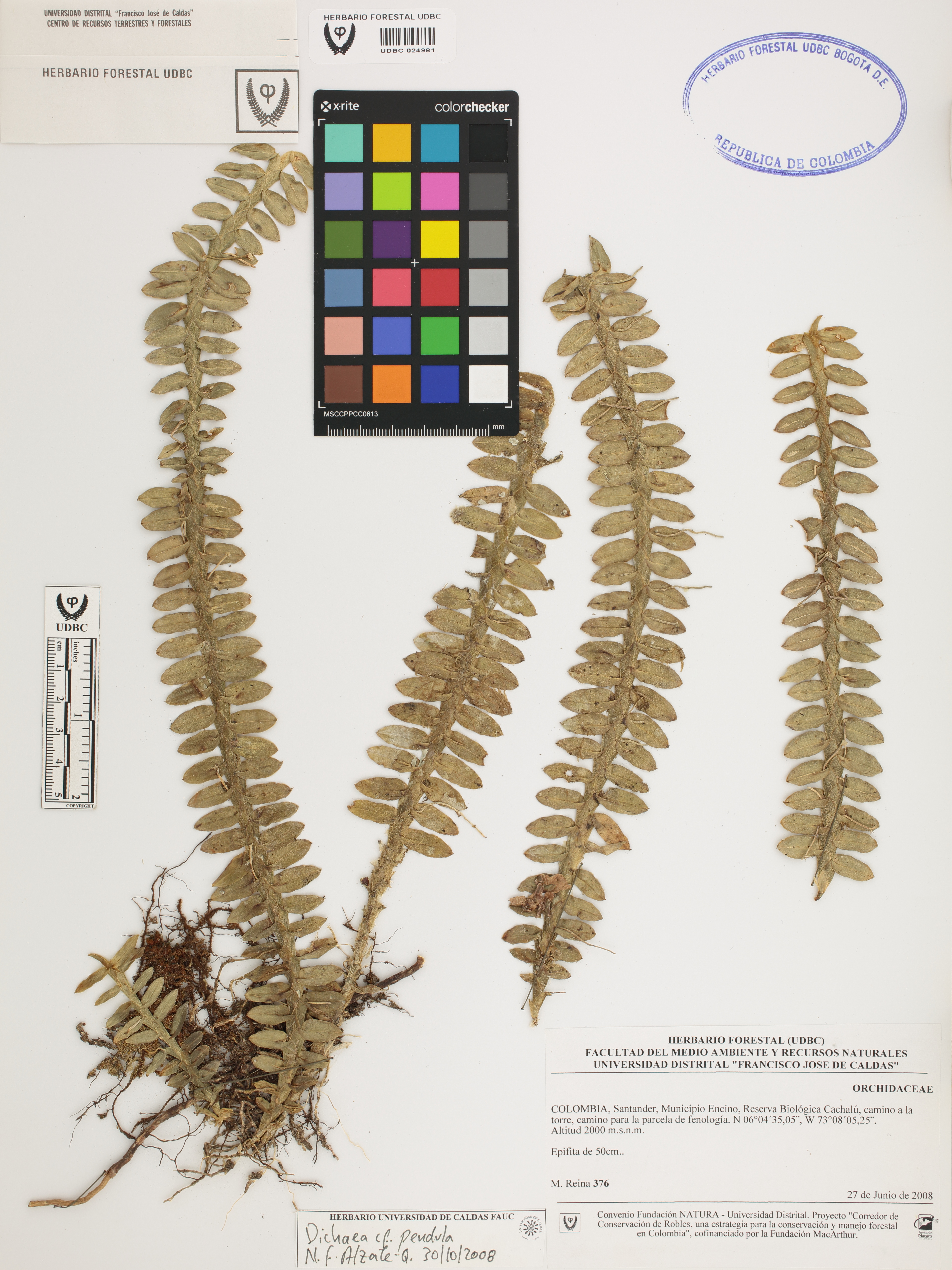 Fotografía del ejemplar Reina, M. 376, determinado como Dichaea pendula en el año 2008