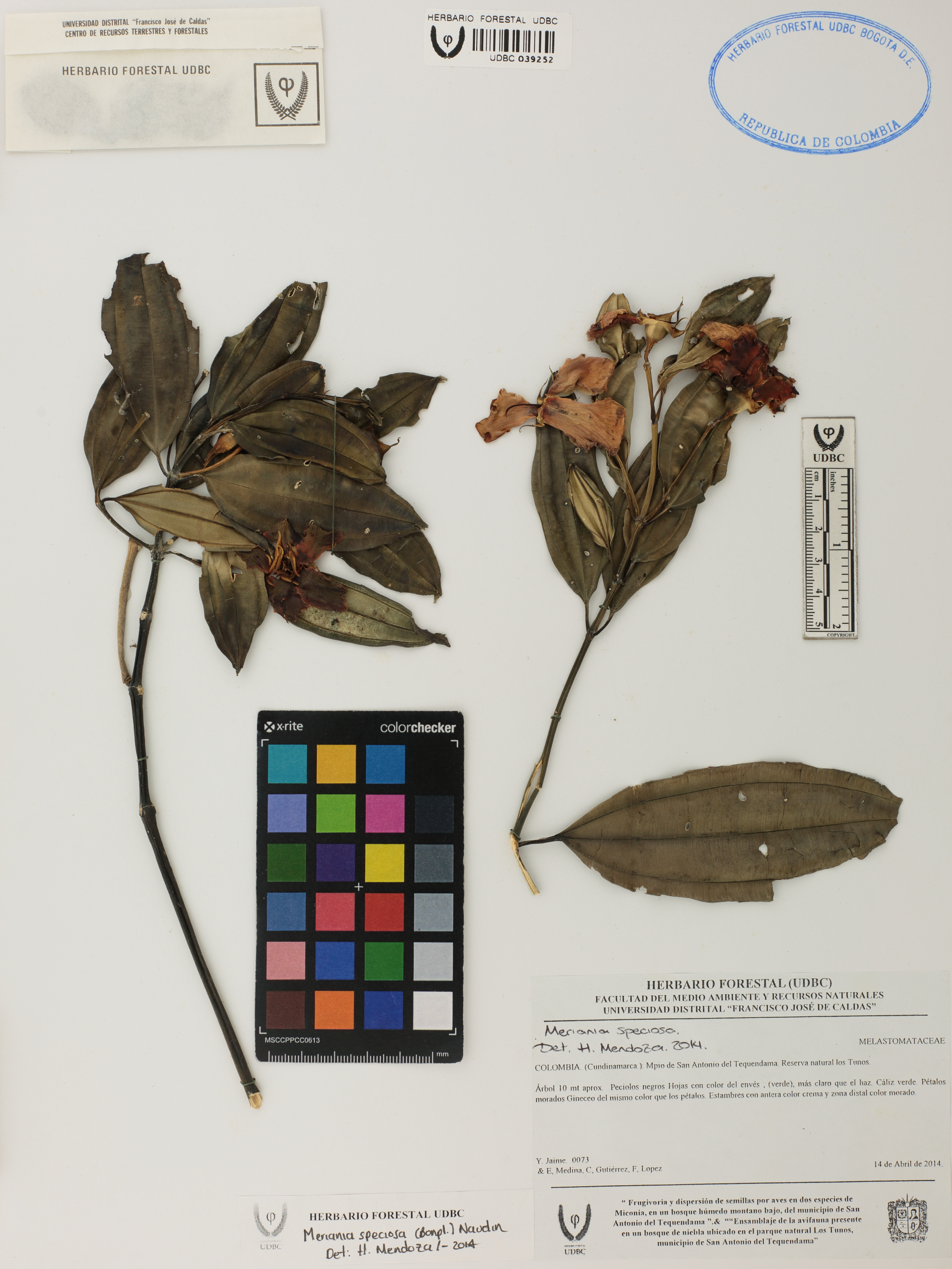 | dc.description | Fotografía del ejemplar Jaime, Y. 73, determinado como Meriania speciosa en el año 2014 | |