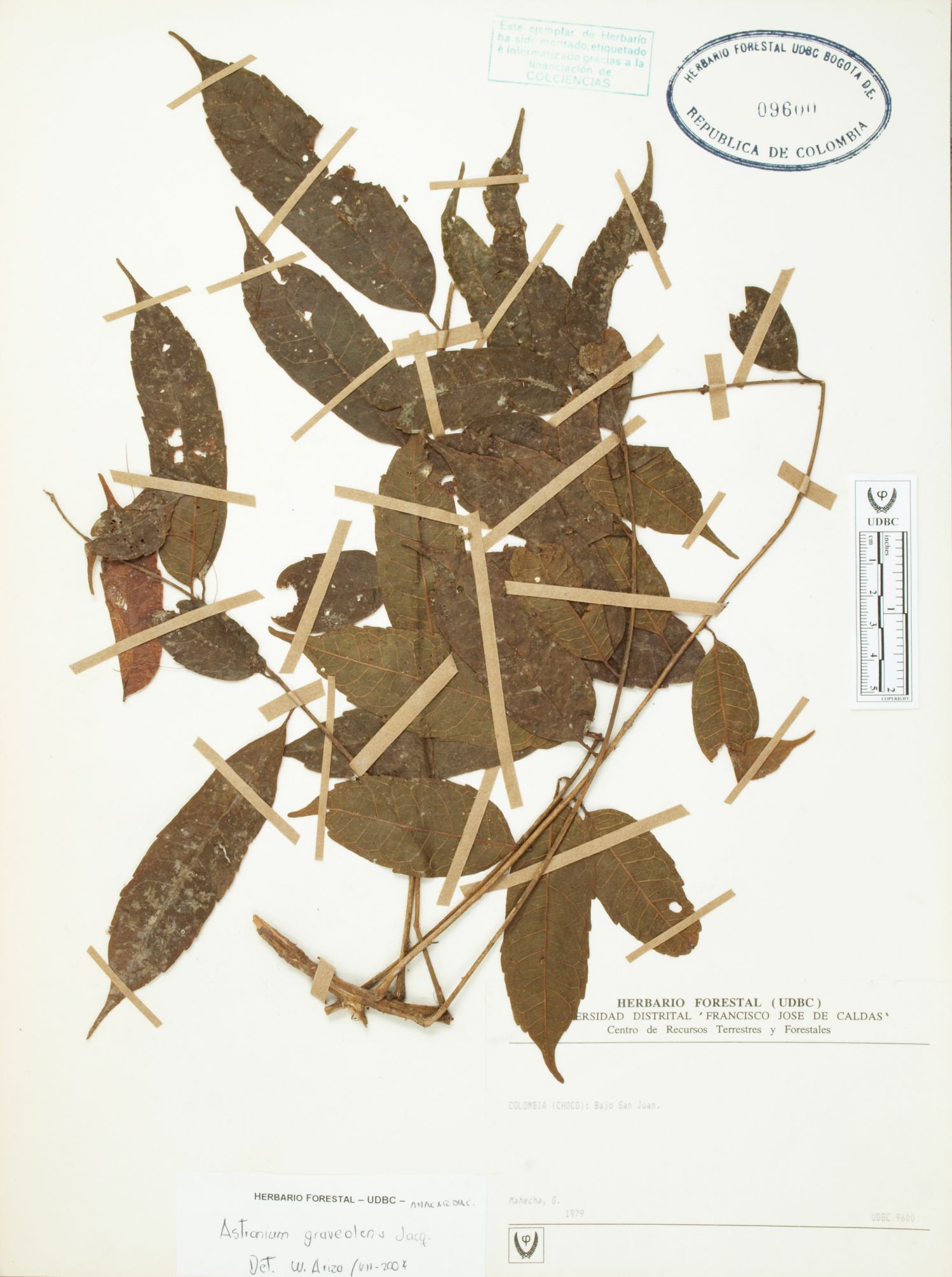 Fotografía del ejemplar Mahecha, G., determinado como Astronium graveolens en el año 2004