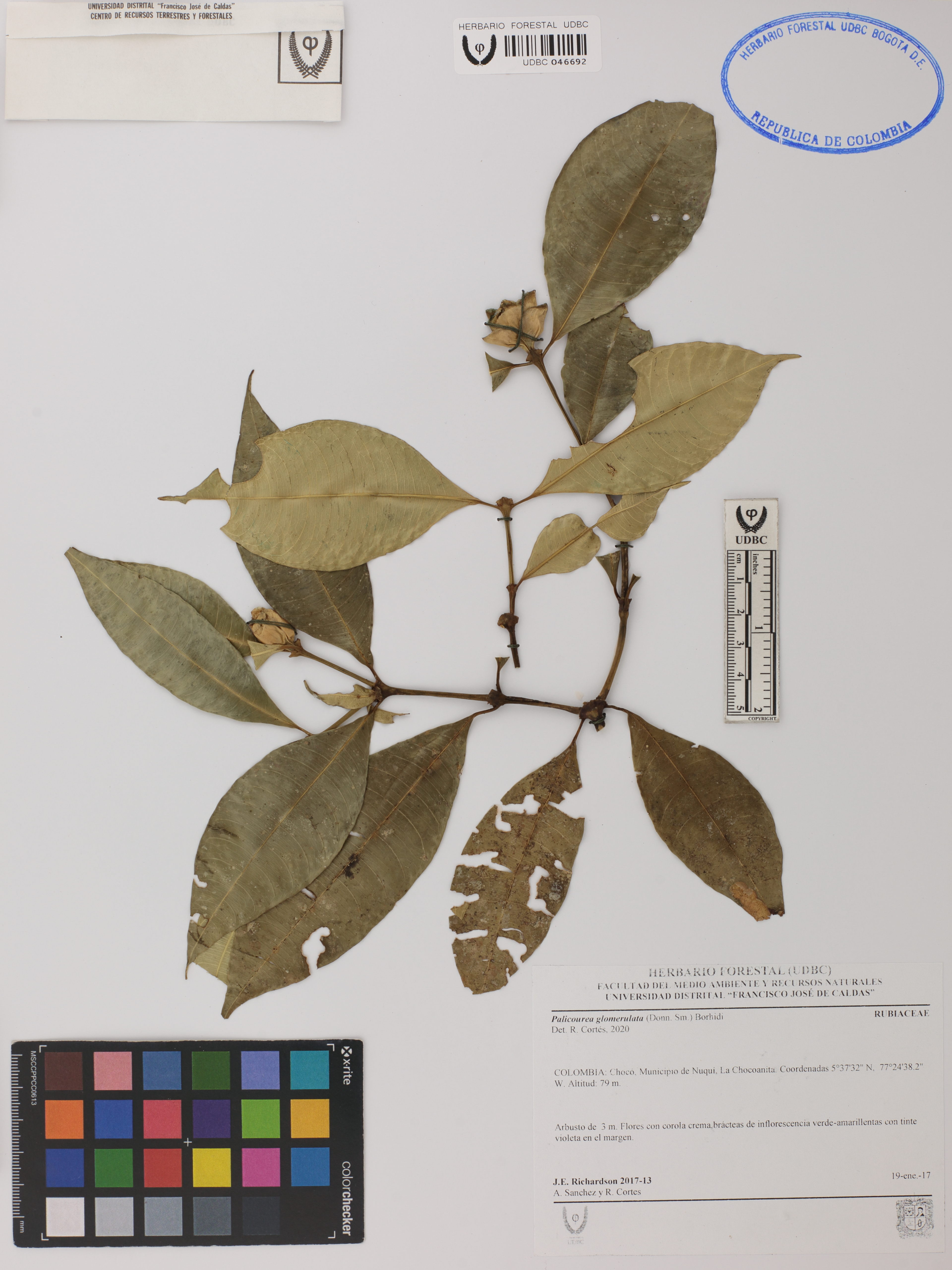 Fotografía del ejemplar Richardson, J. 13, determinado como Palicourea glomerulata en el año 2020