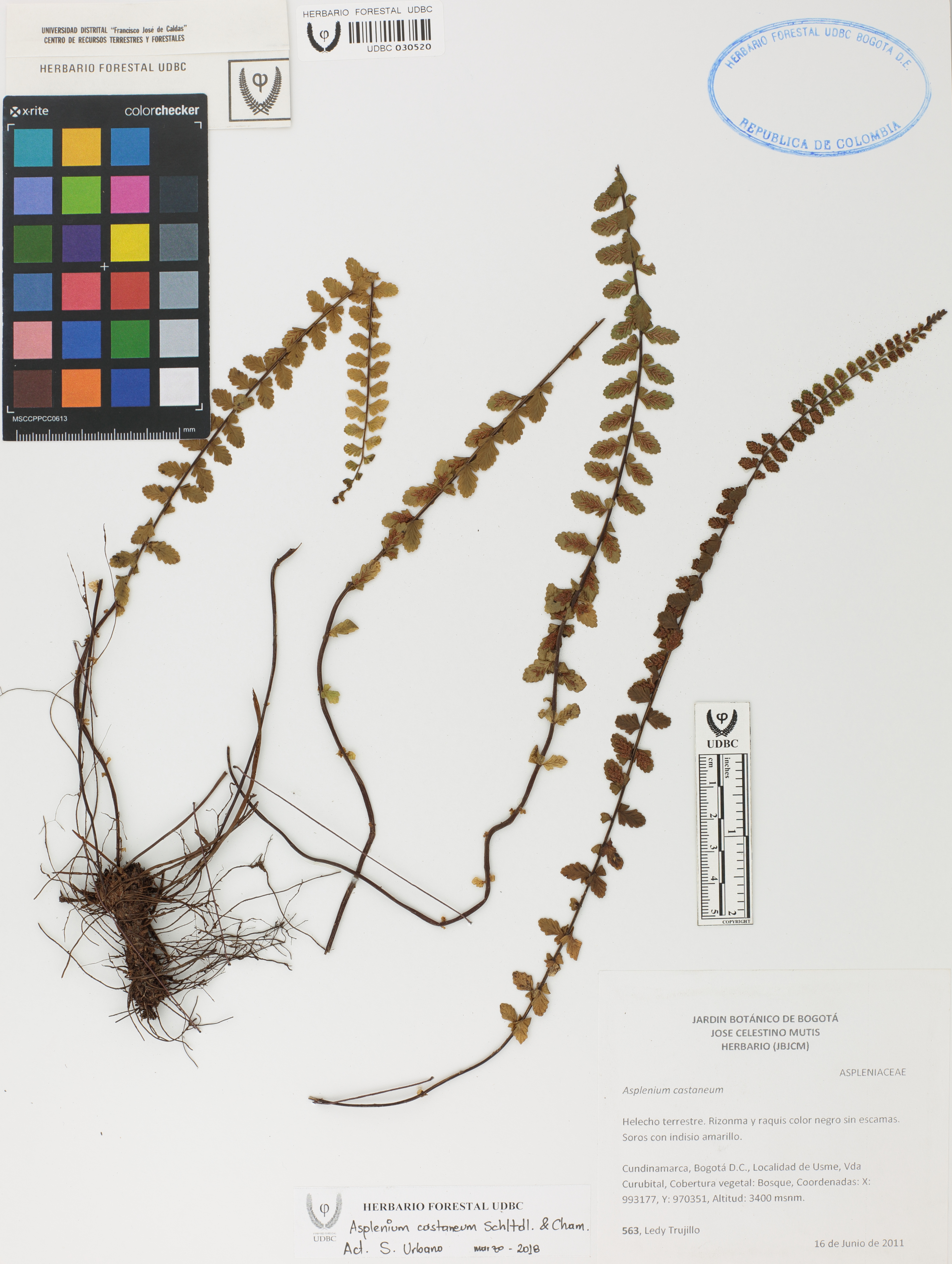 Fotografía del ejemplar Trujillo, L. 563, determinado como Asplenium castaneum