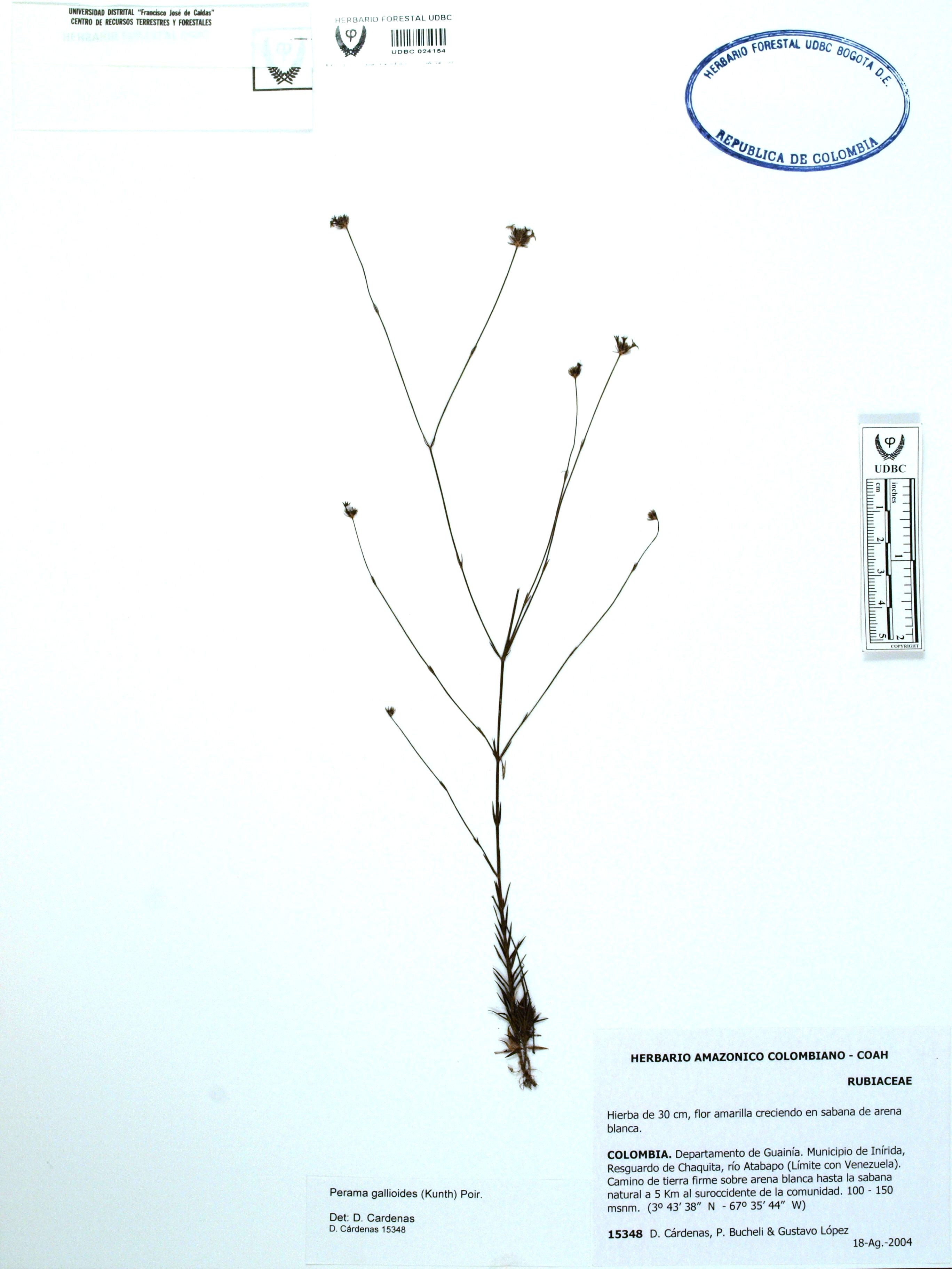 | dc.description | Fotografía del ejemplar Cárdenas, D. 15348, determinado como Perama galioides | |
