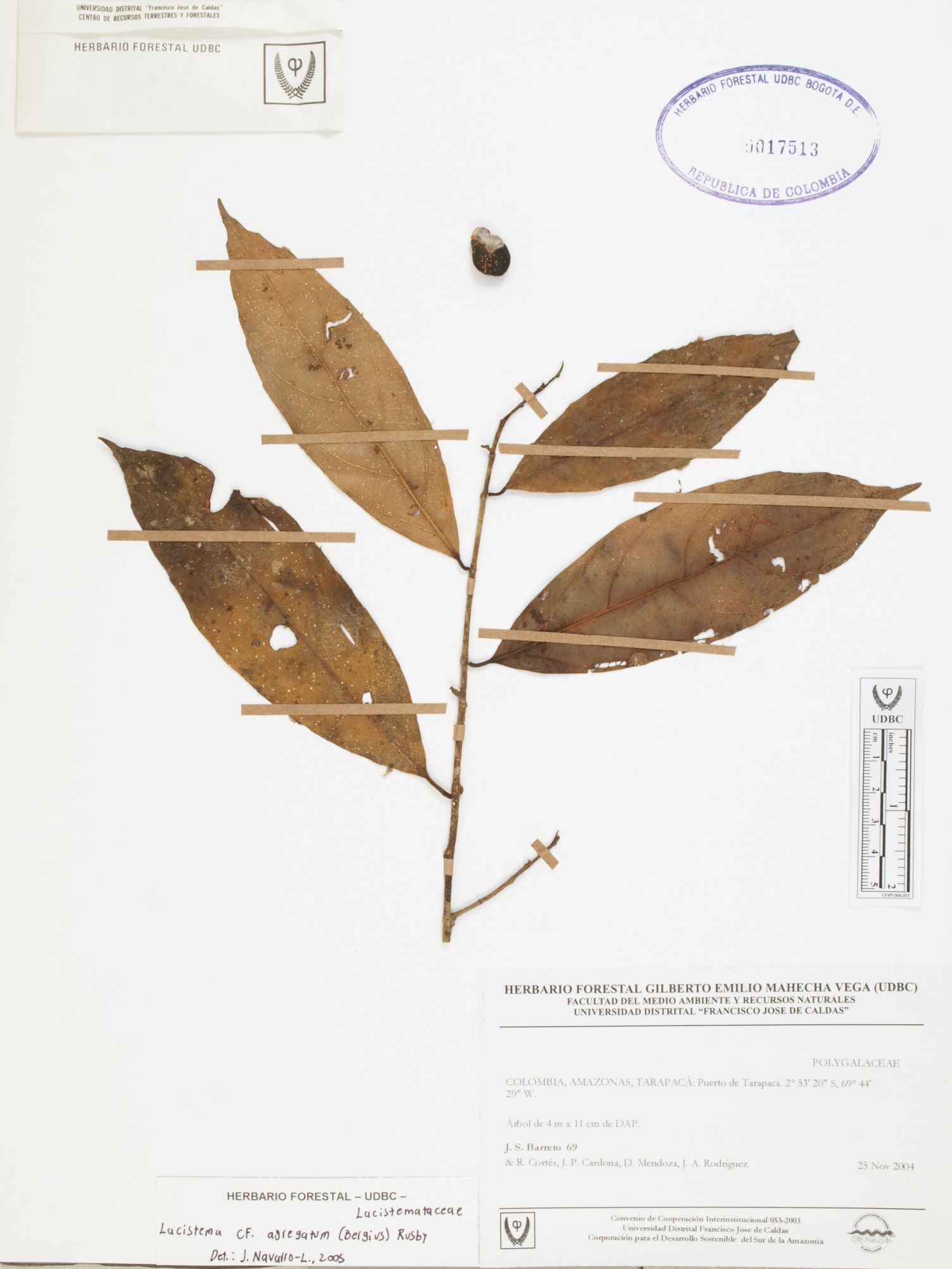 Fotografía del ejemplar Barreto, J. 69, determinado como Lacistema aggregatum en el año 2005