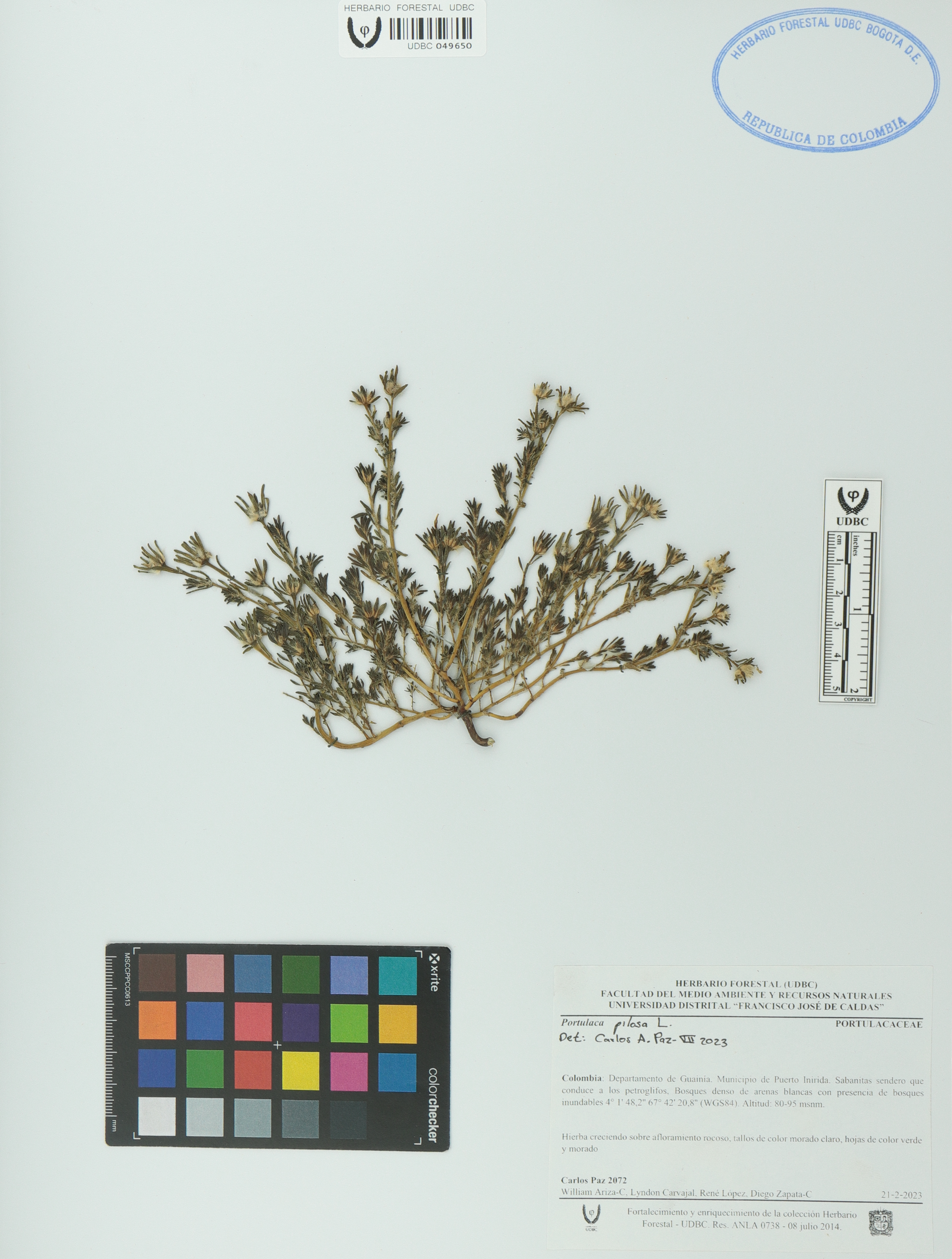 Fotografía del ejemplar Paz, Carlos A. 2072, determinado como Portulaca pilosa en el año 2023