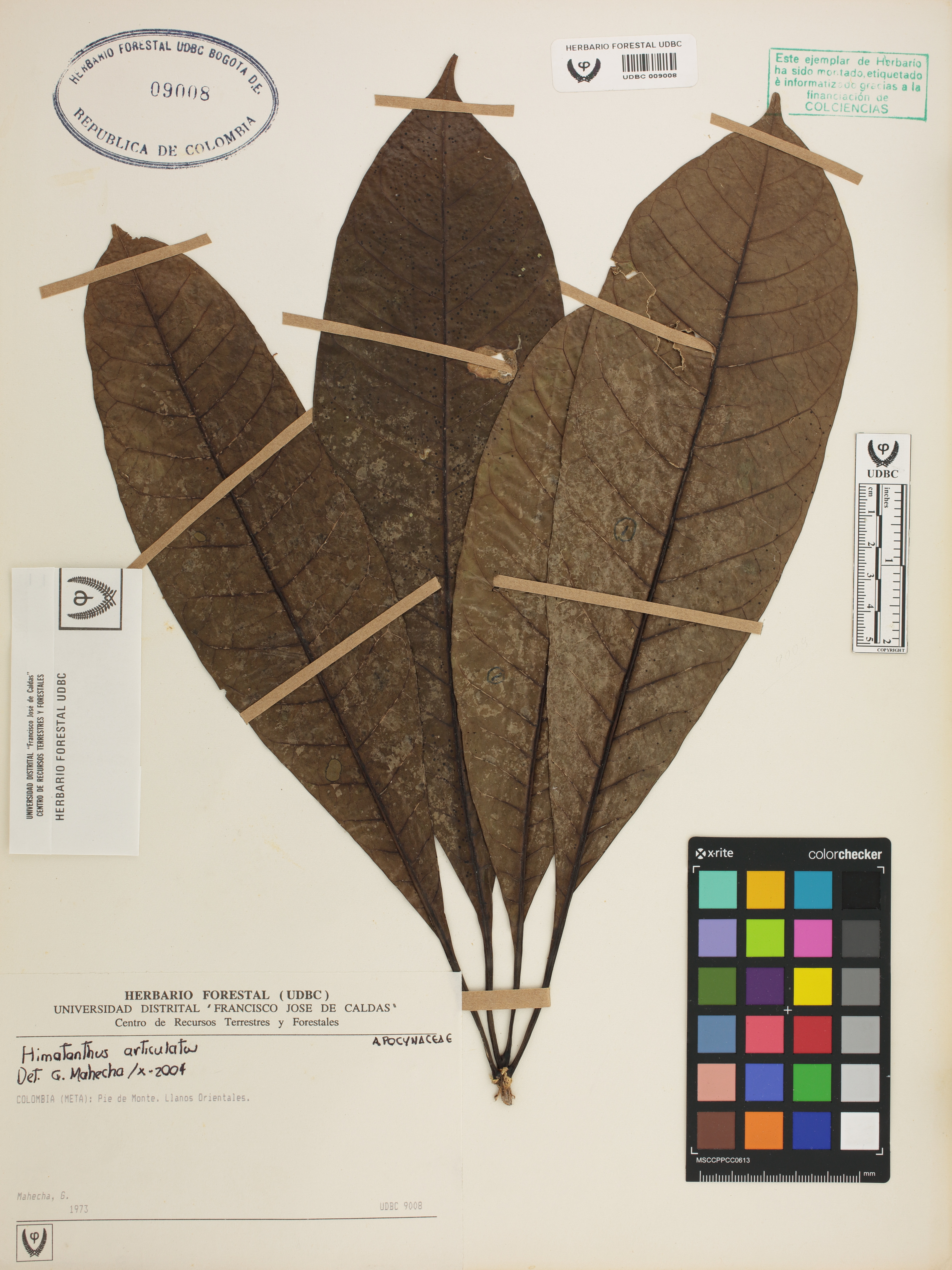Fotografía del ejemplar Mahecha, G., determinado como Himatanthus articulatus en el año 2004