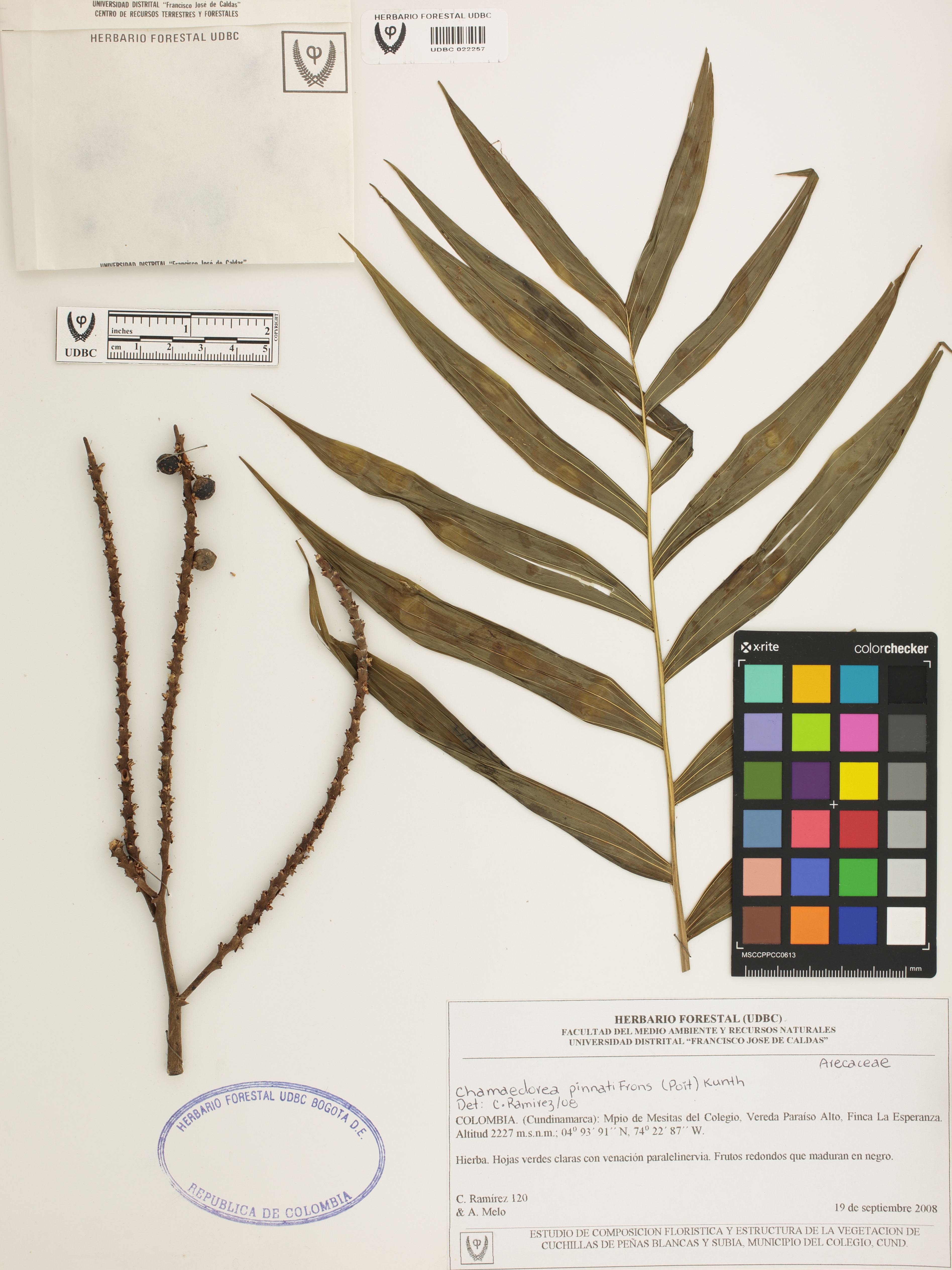 Fotografía del ejemplar Ramírez, C. 120, determinado como Chamaedorea pinnatifrons en el año 2008