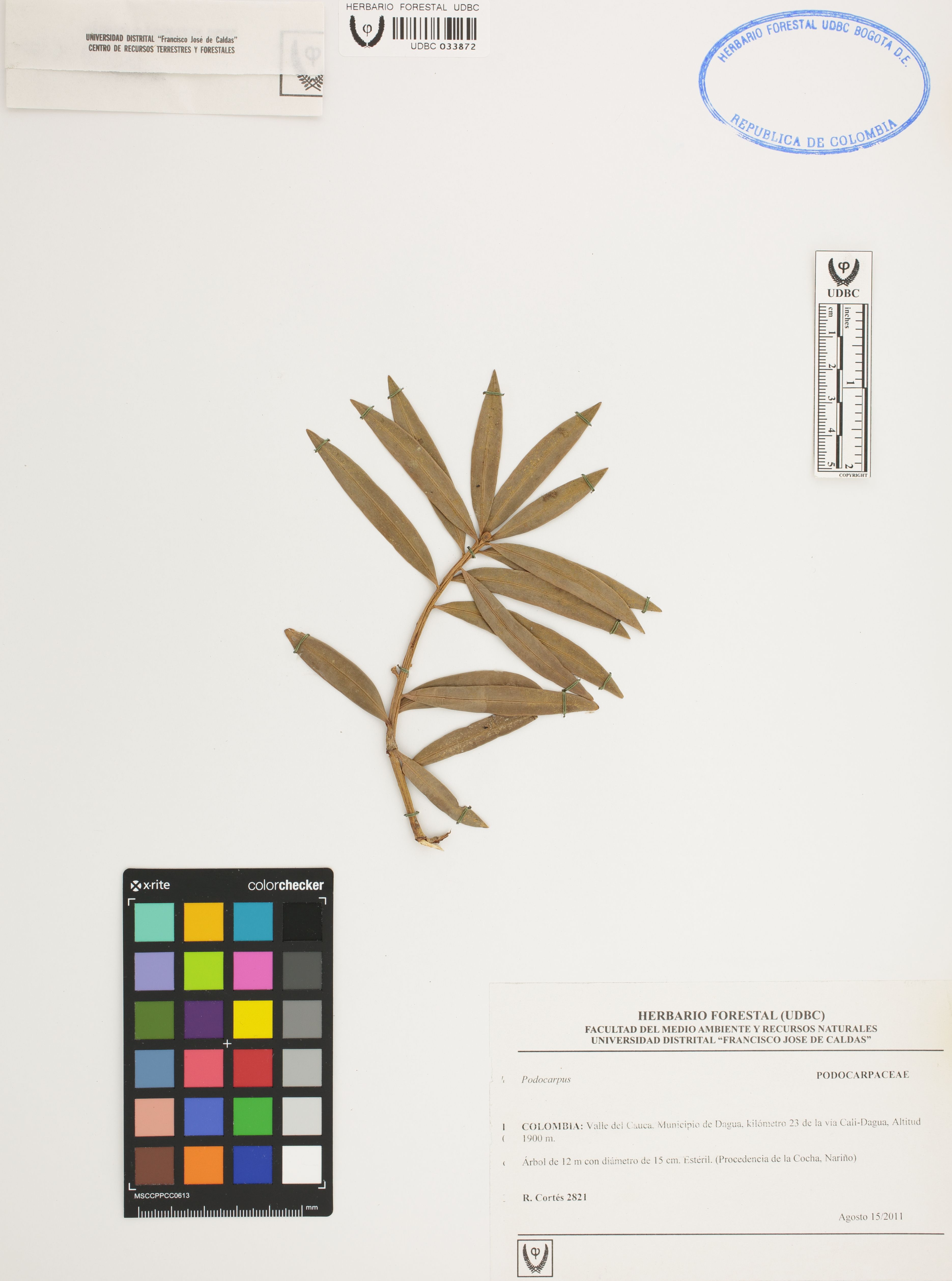 Fotografía del ejemplar Cortés, R. 2821, determinado como Podocarpus sp.