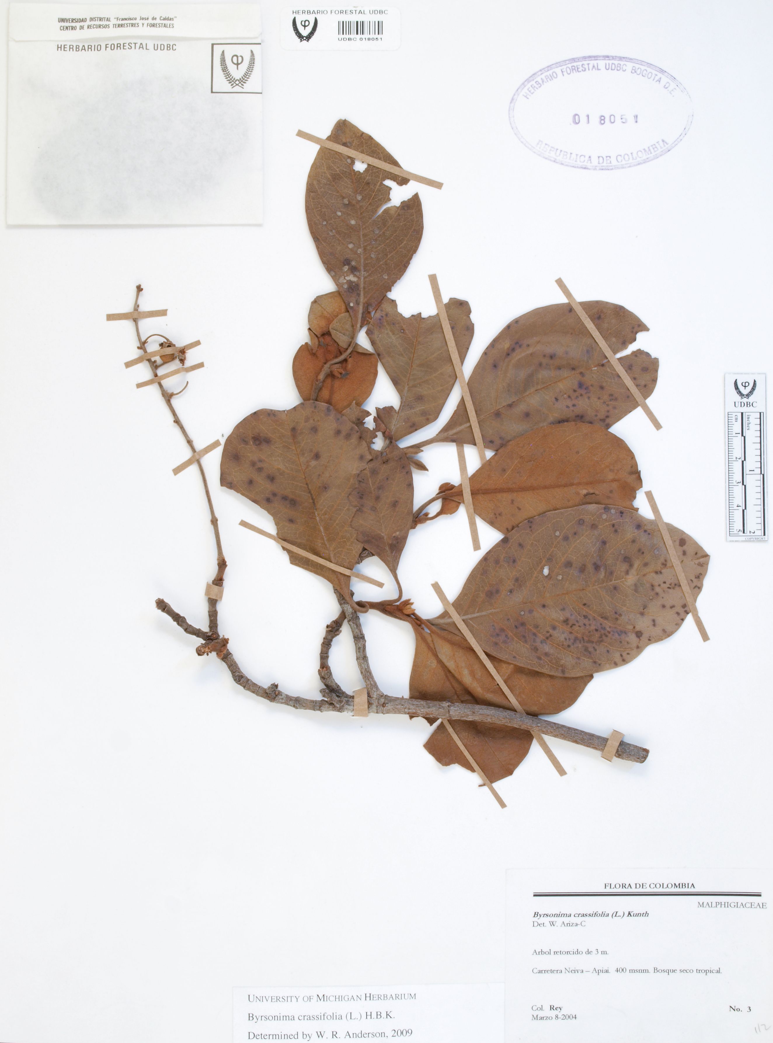 Fotografía del ejemplar Rey, C. 3, determinado como Byrsonima crassifolia en el año 2009
