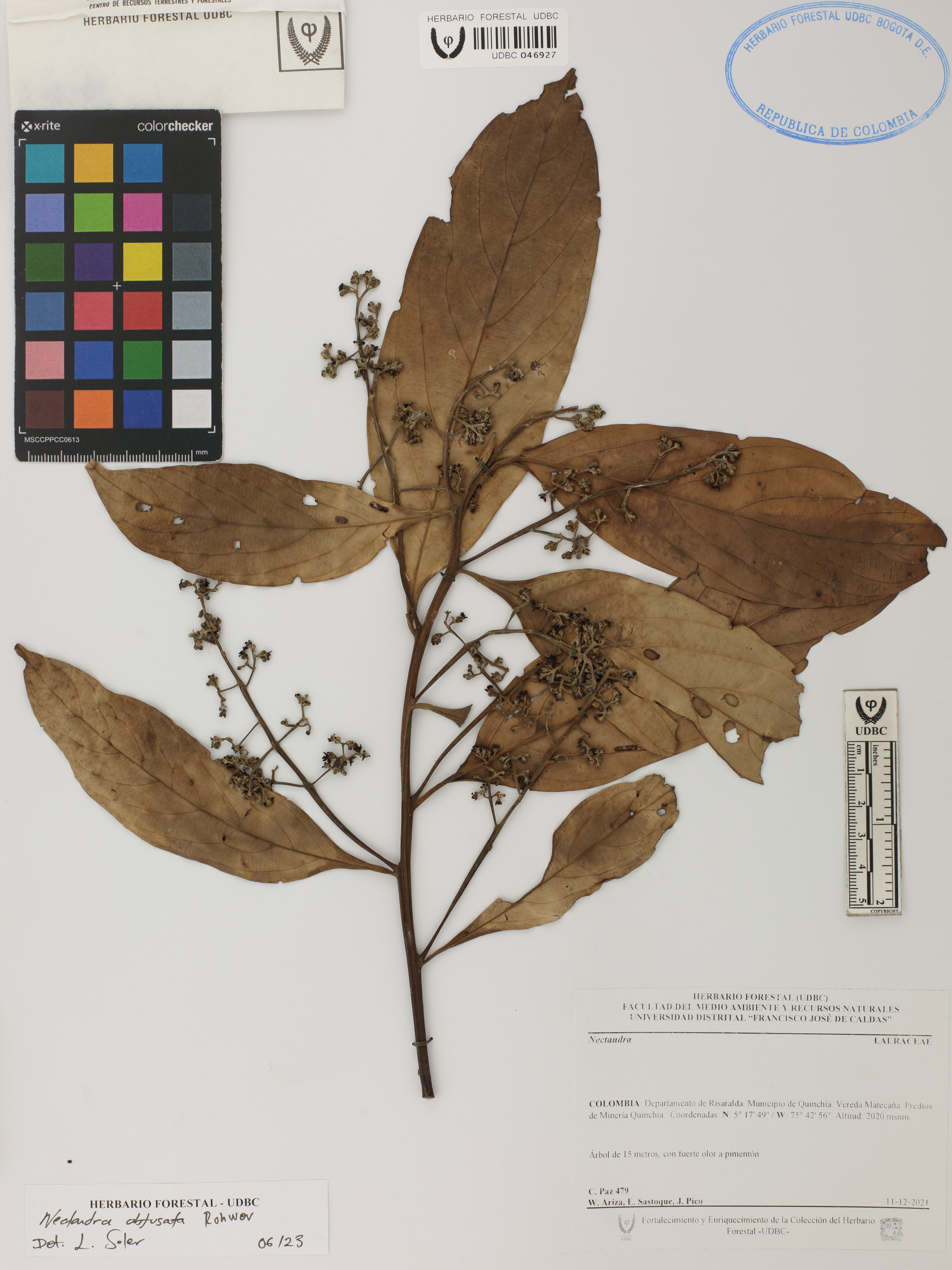 Fotografía del ejemplar Paz, C. 479, determinado como Nectandra obtusata en el año 2023