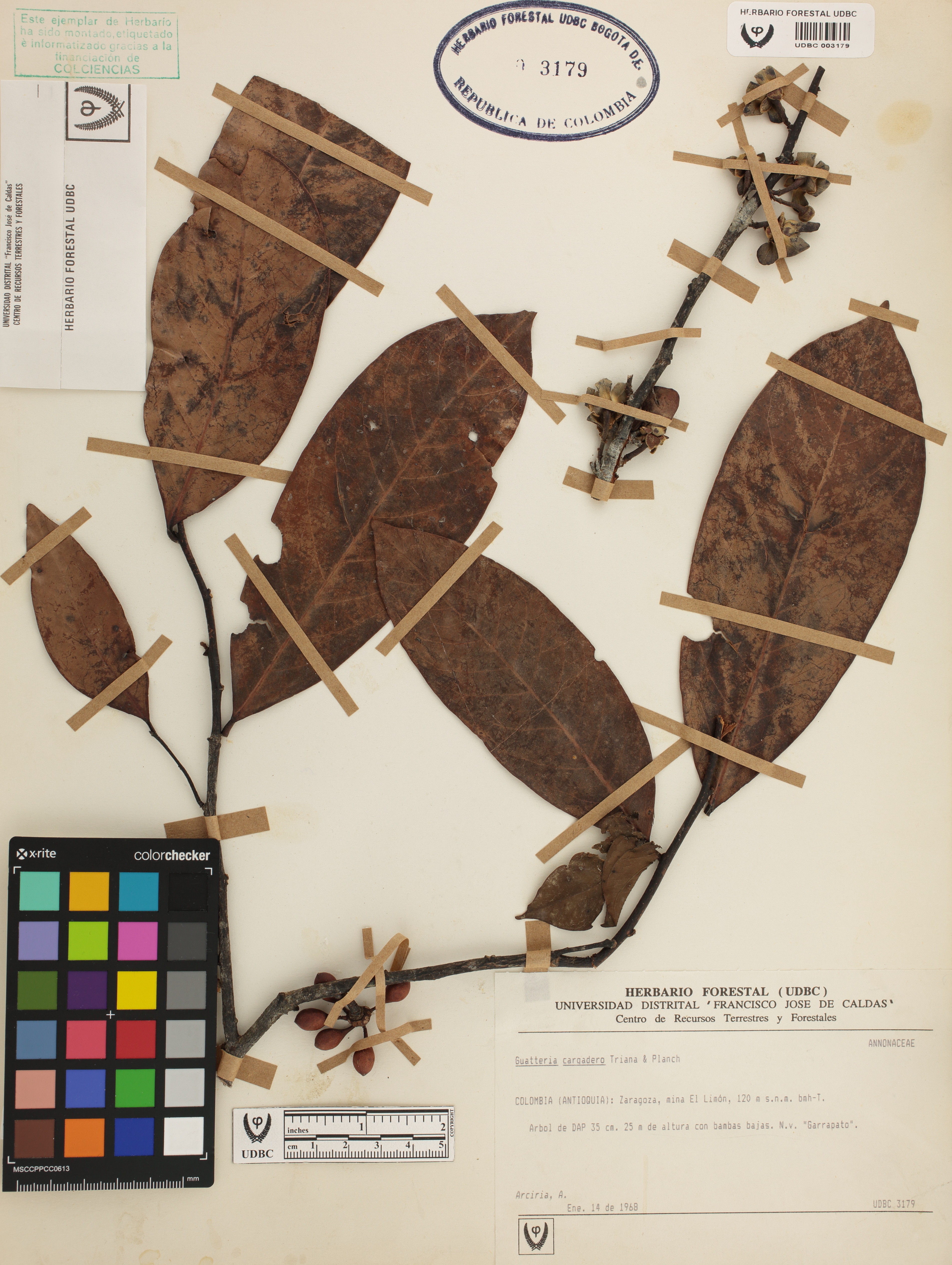 Fotografía del ejemplar Arciria, A., determinado como Guatteria sp. en el año 2024