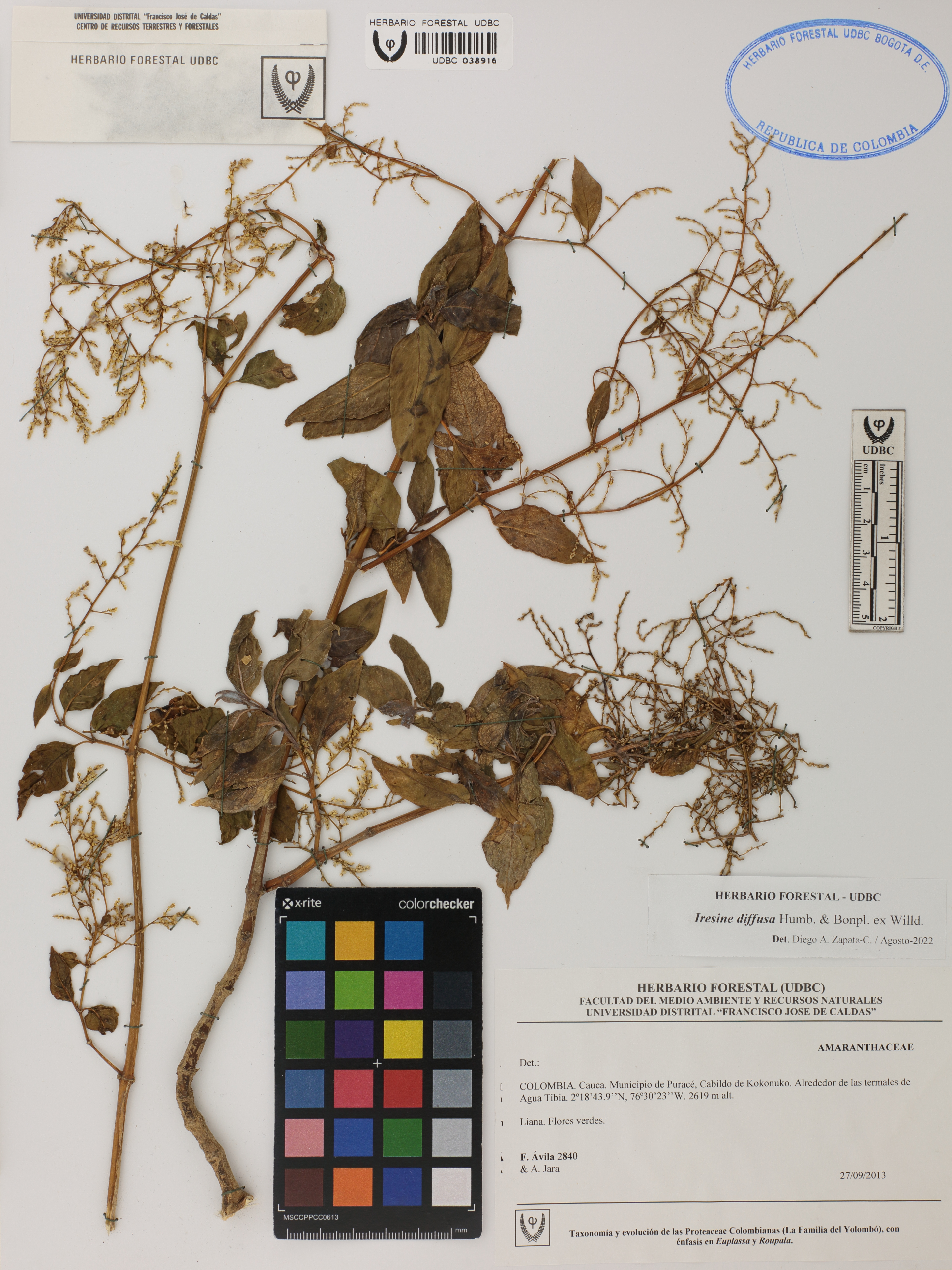 Fotografía del ejemplar Ávila, F. 2840, determinado como Iresine diffusa en el año 2022