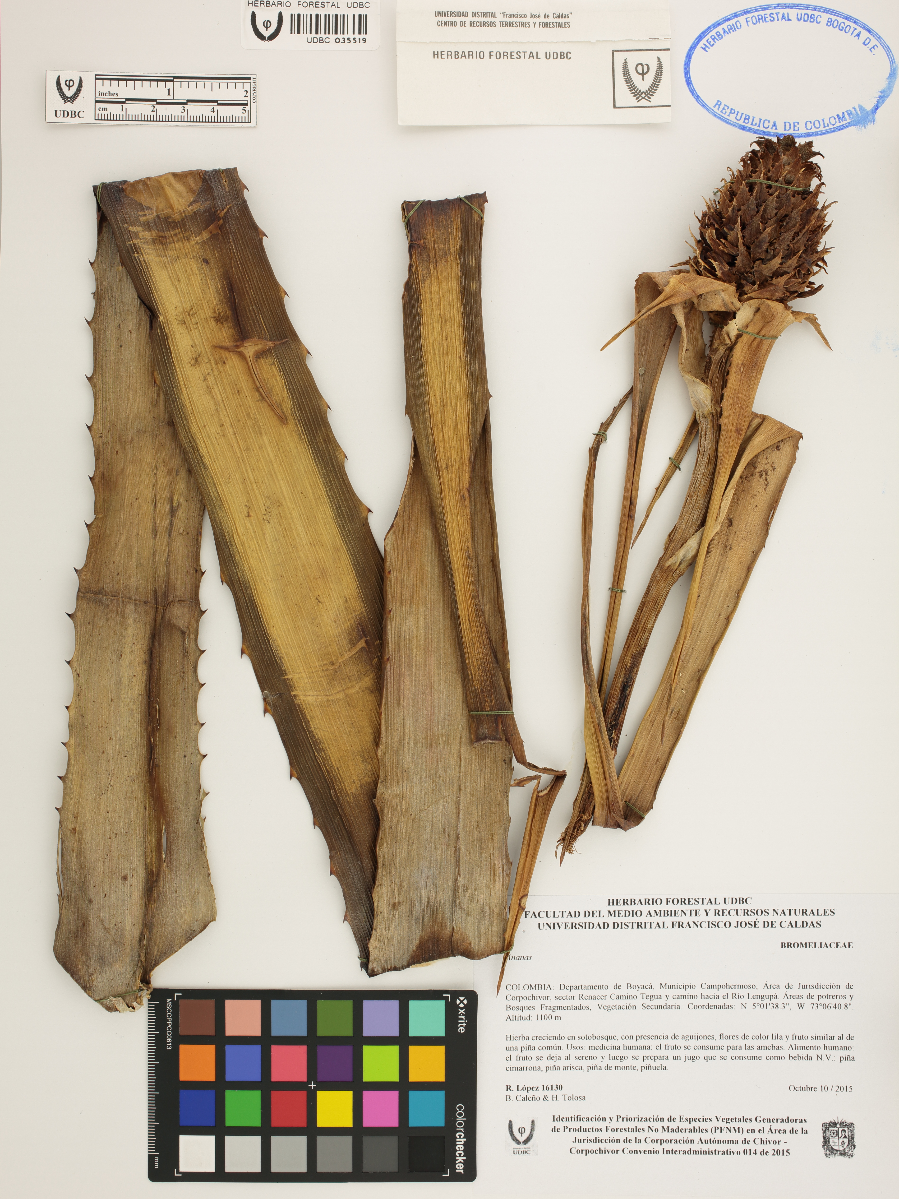 | dc.description | Fotografía del ejemplar López, R. 16130, determinado como Ananas sp. | |