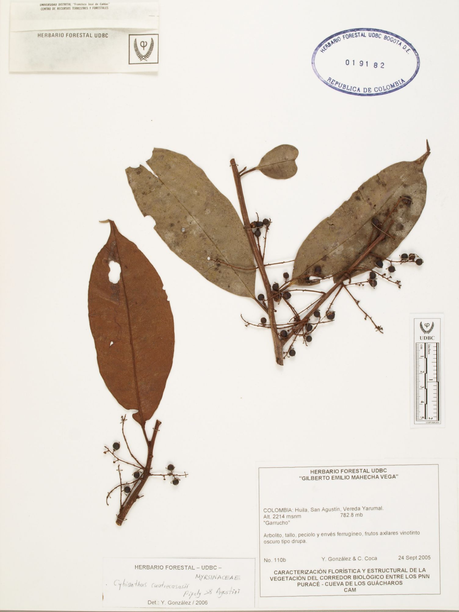 Fotografía del ejemplar González, Y. 110, determinado como Cybianthus cuatrecasasii en el año 2006