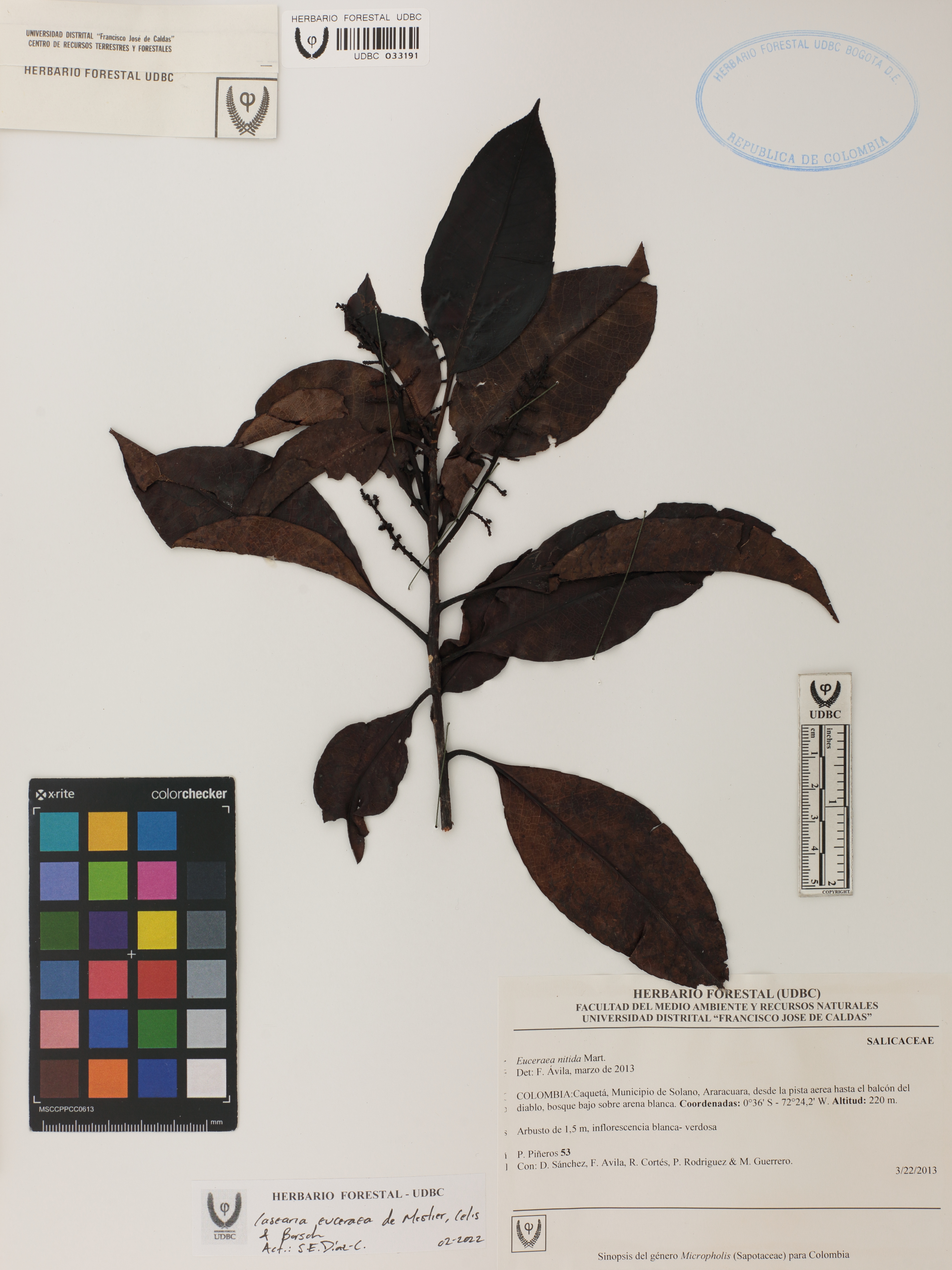 Fotografía del ejemplar Piñeros, P. 53, determinado como Casearia euceraea en el año 2013