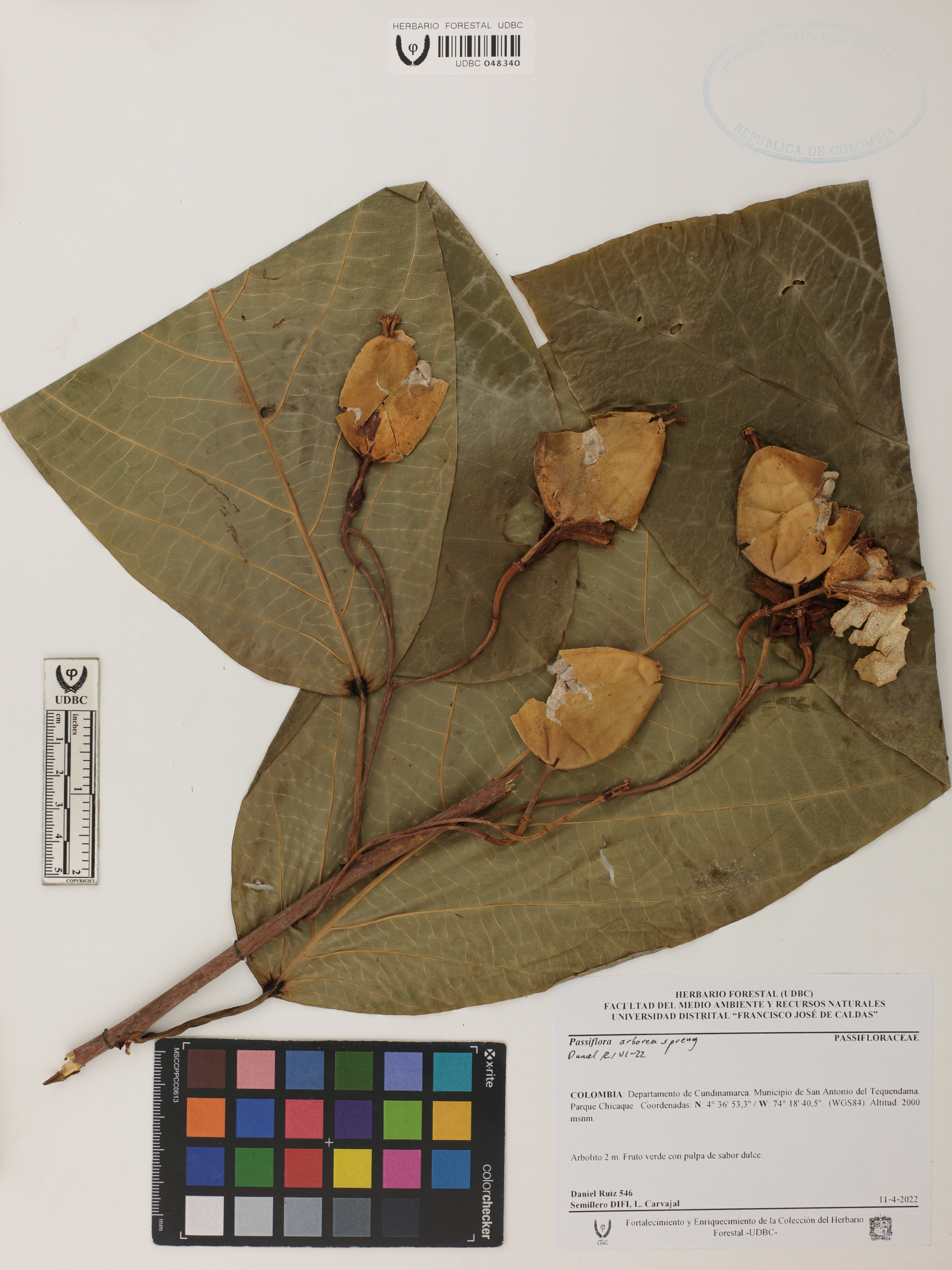 Fotografía del ejemplar Ruiz, Daniel 546, determinado como Passiflora arborea en el año 2022