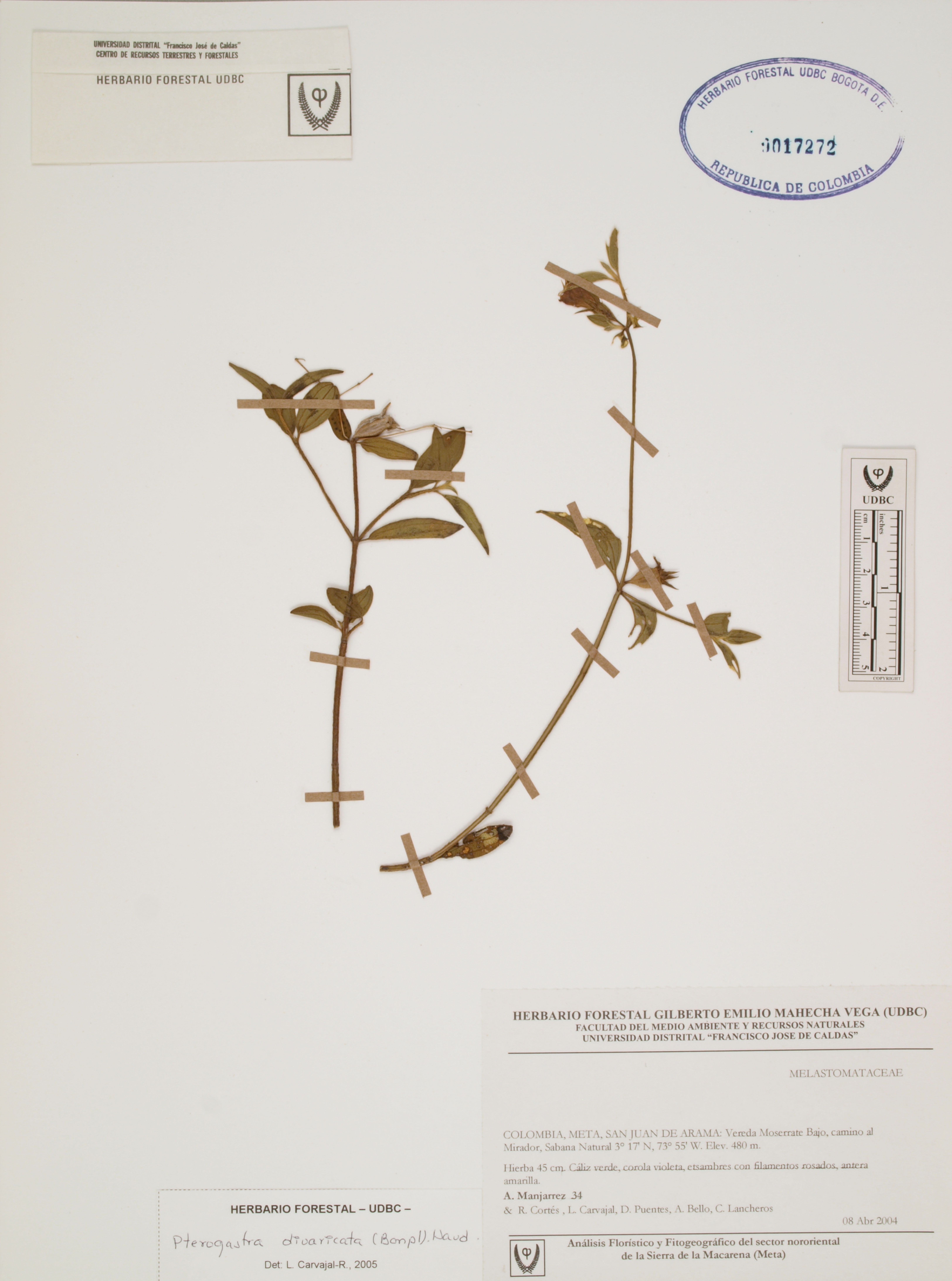 Fotografía del ejemplar Manjarrez, A. 34, determinado como Pterogastra divaricata en el año 2005