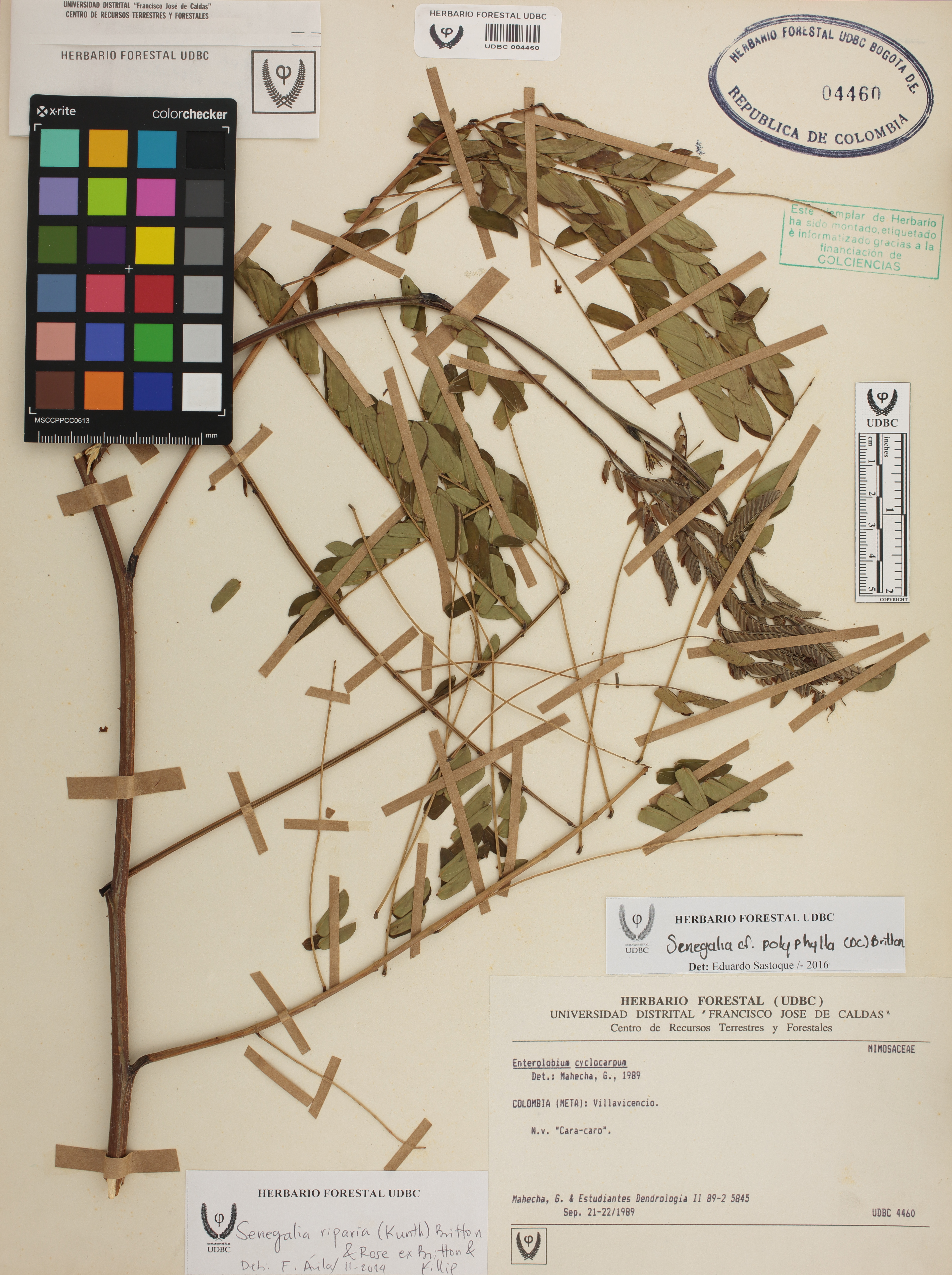 Fotografía del ejemplar Mahecha, G. 5845, determinado como Senegalia polyphylla en el año 2016