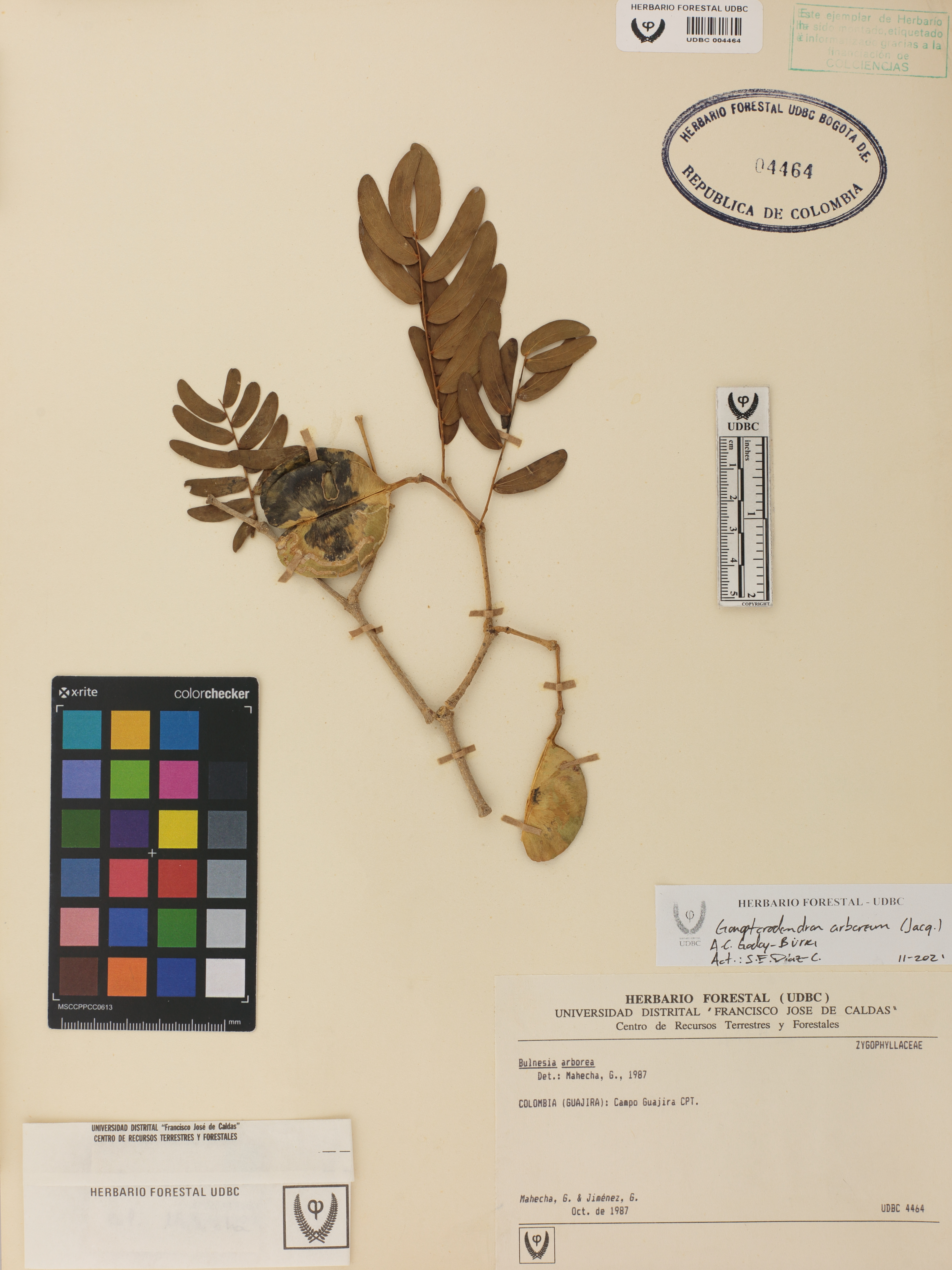 Fotografía del ejemplar Mahecha, G., determinado como Gonopterodendron arboreum en el año 1987