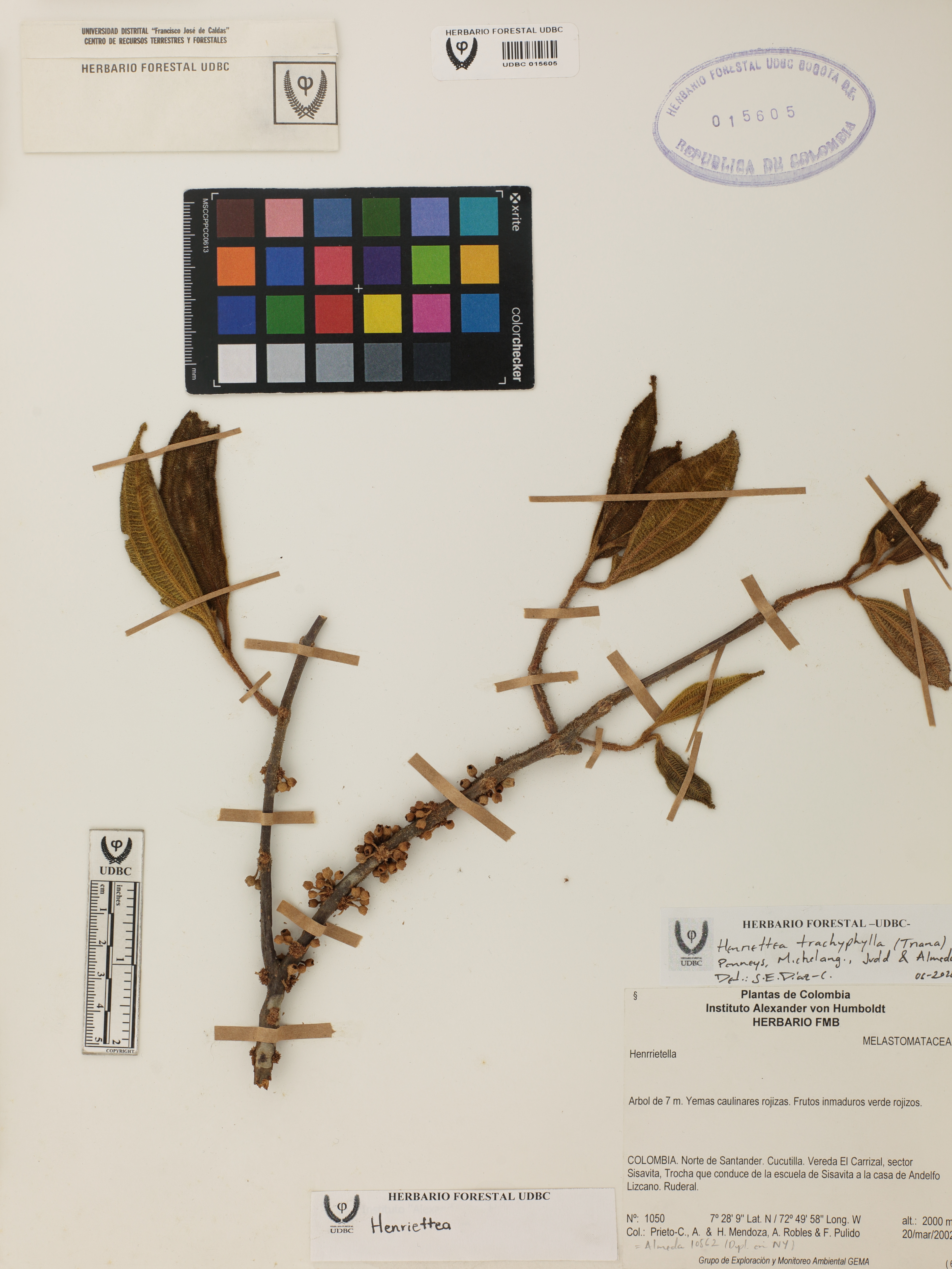 Fotografía del ejemplar Prieto-C., A. 1050, determinado como Henriettea trachyphylla en el año 2022