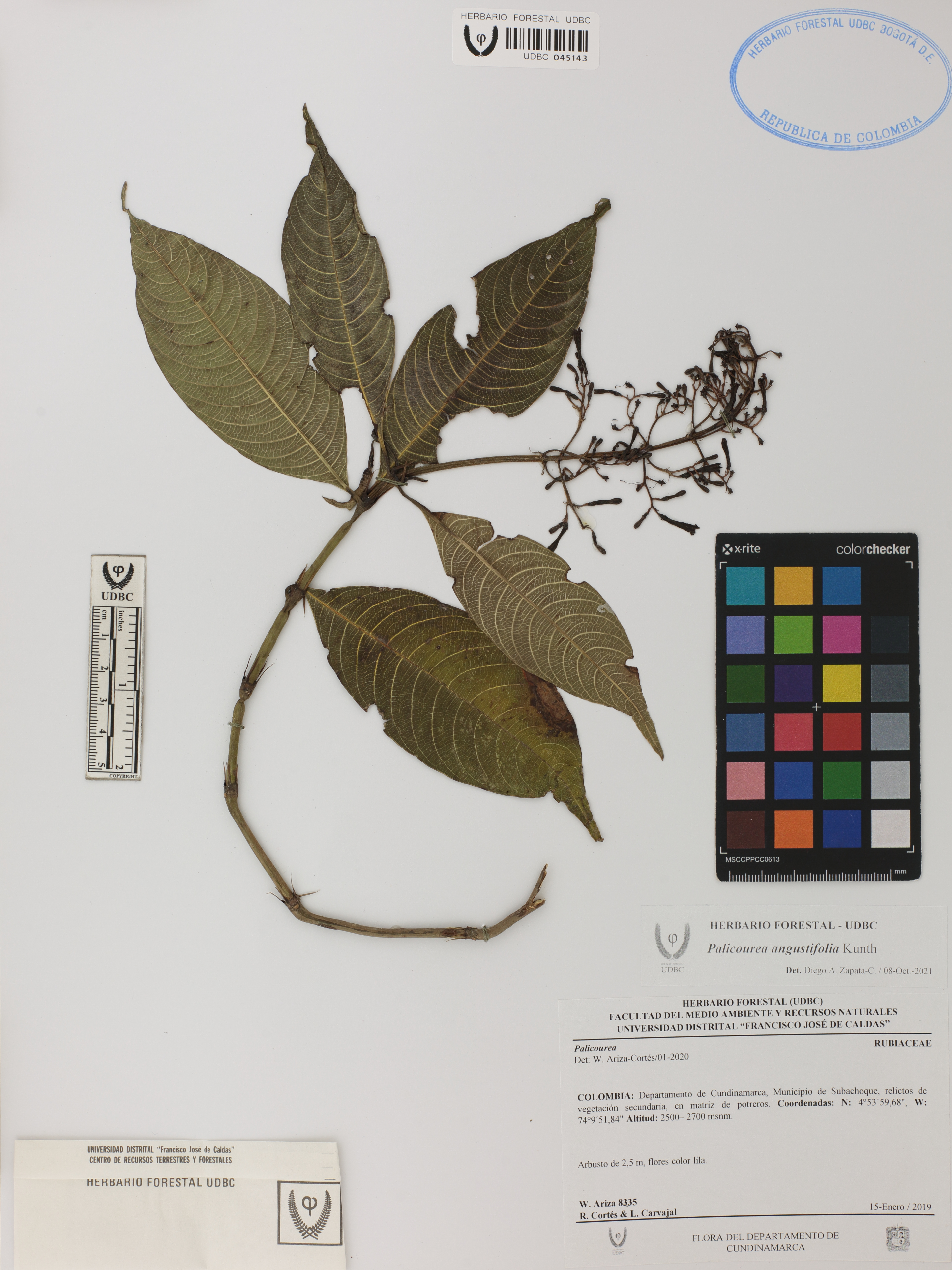Fotografía del ejemplar Ariza, W. 8335, determinado como Palicourea angustifolia en el año 2021