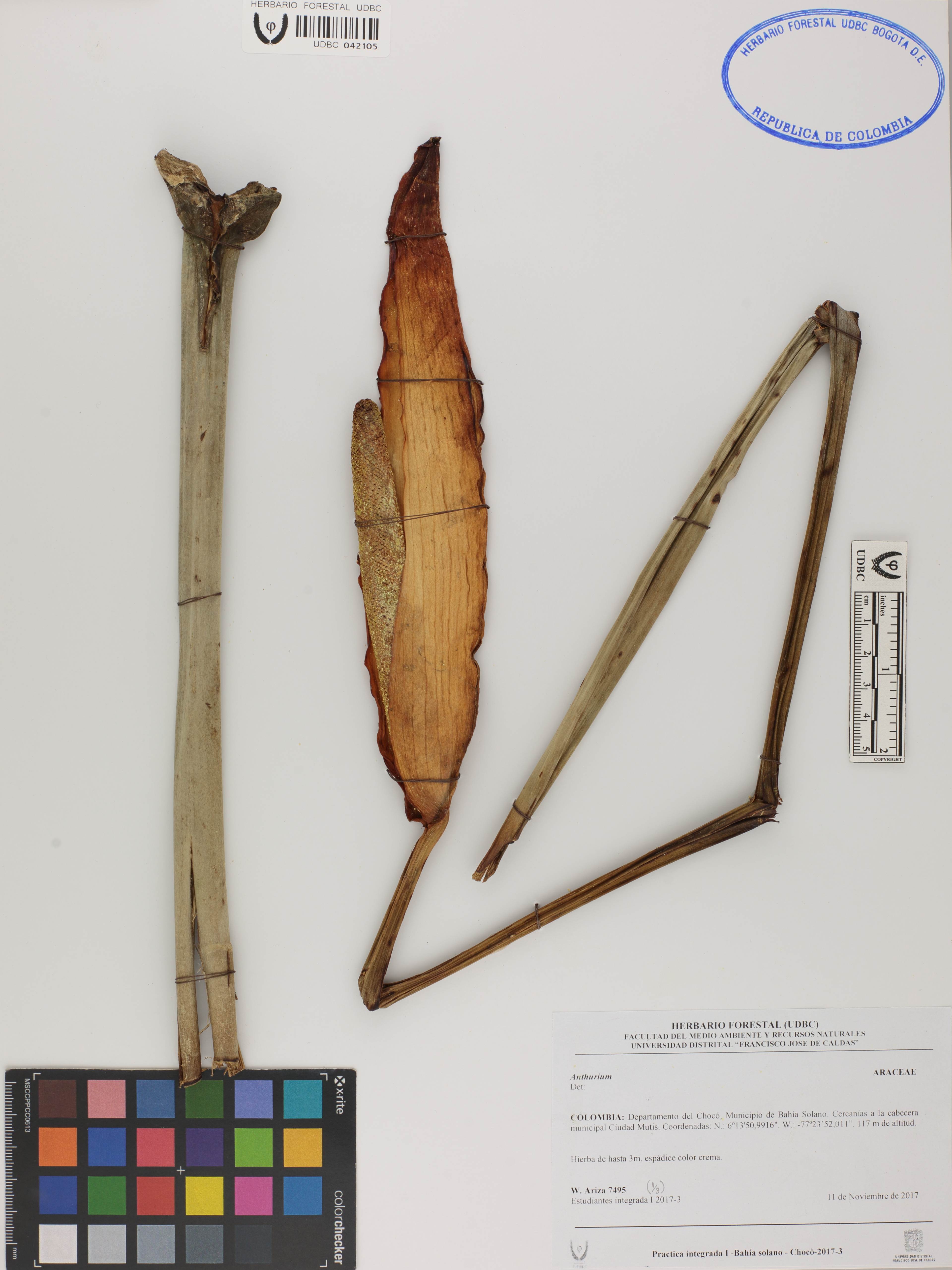 Fotografía del ejemplar Ariza, W. 7495, determinado como Anthurium sp.