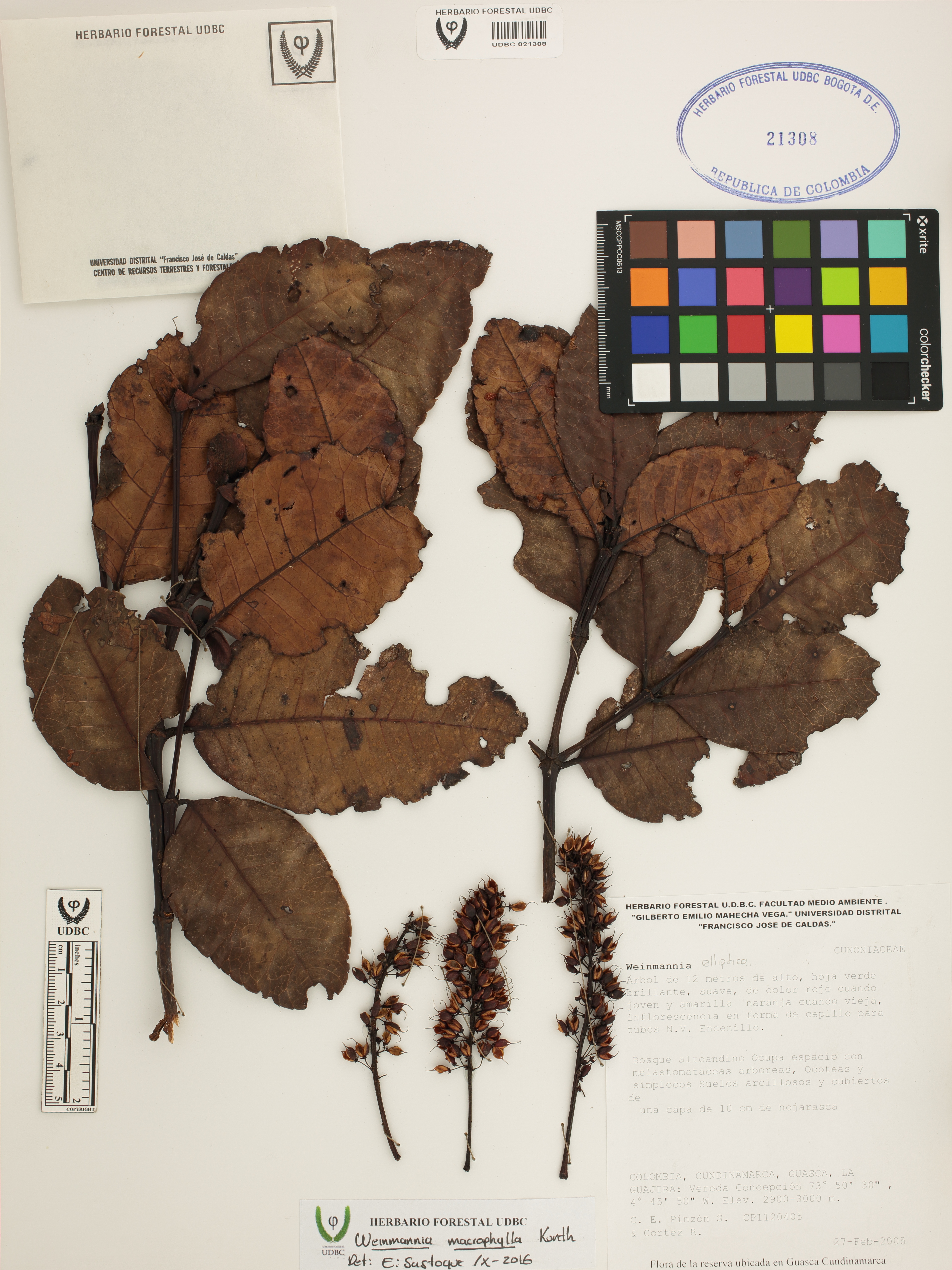 Fotografía del ejemplar Pinzón-S., C., determinado como Weinmannia macrophylla en el año 2016