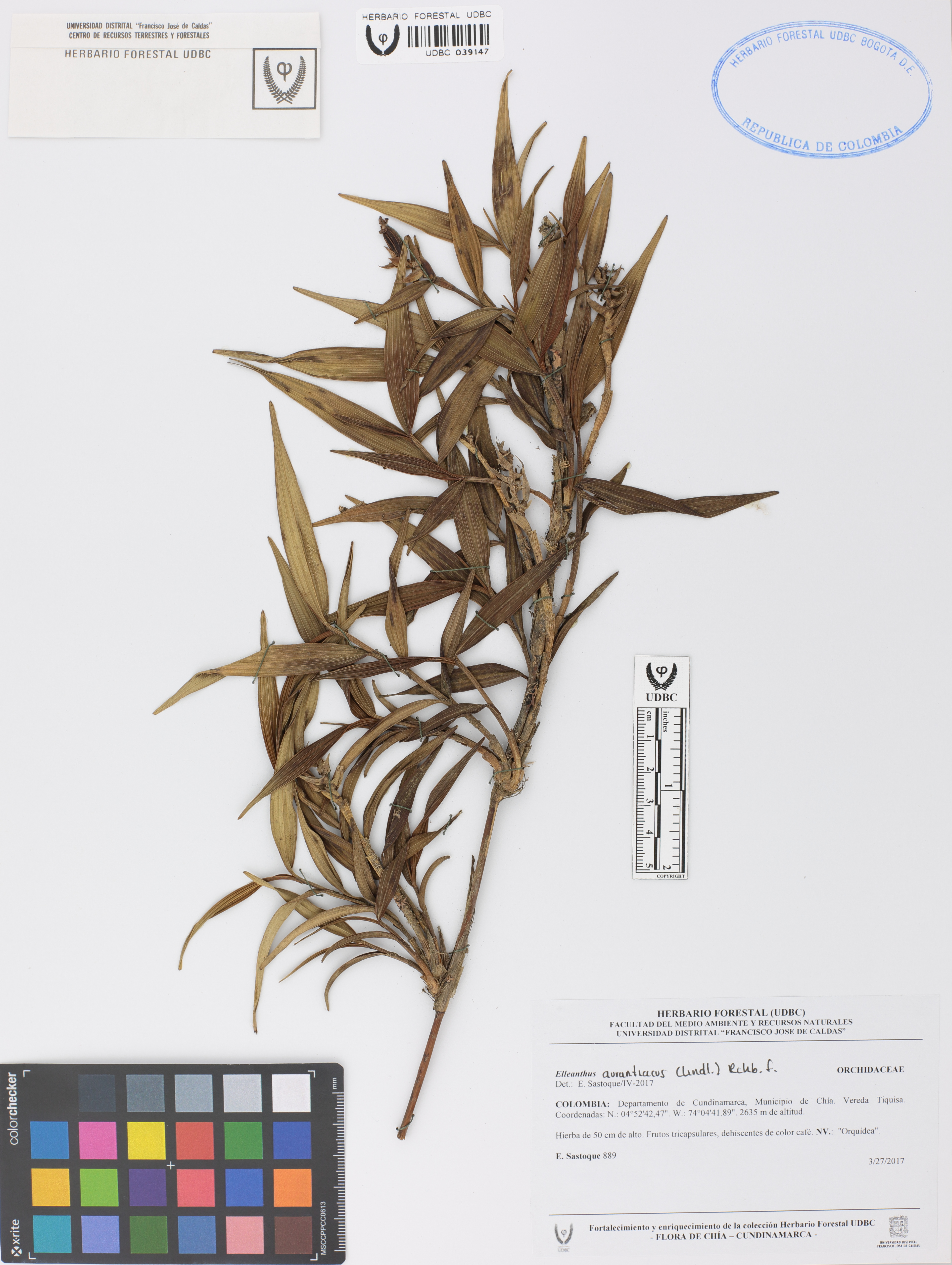 Fotografía del ejemplar Sastoque, E. 889, determinado como Elleanthus aurantiacus en el año 2017