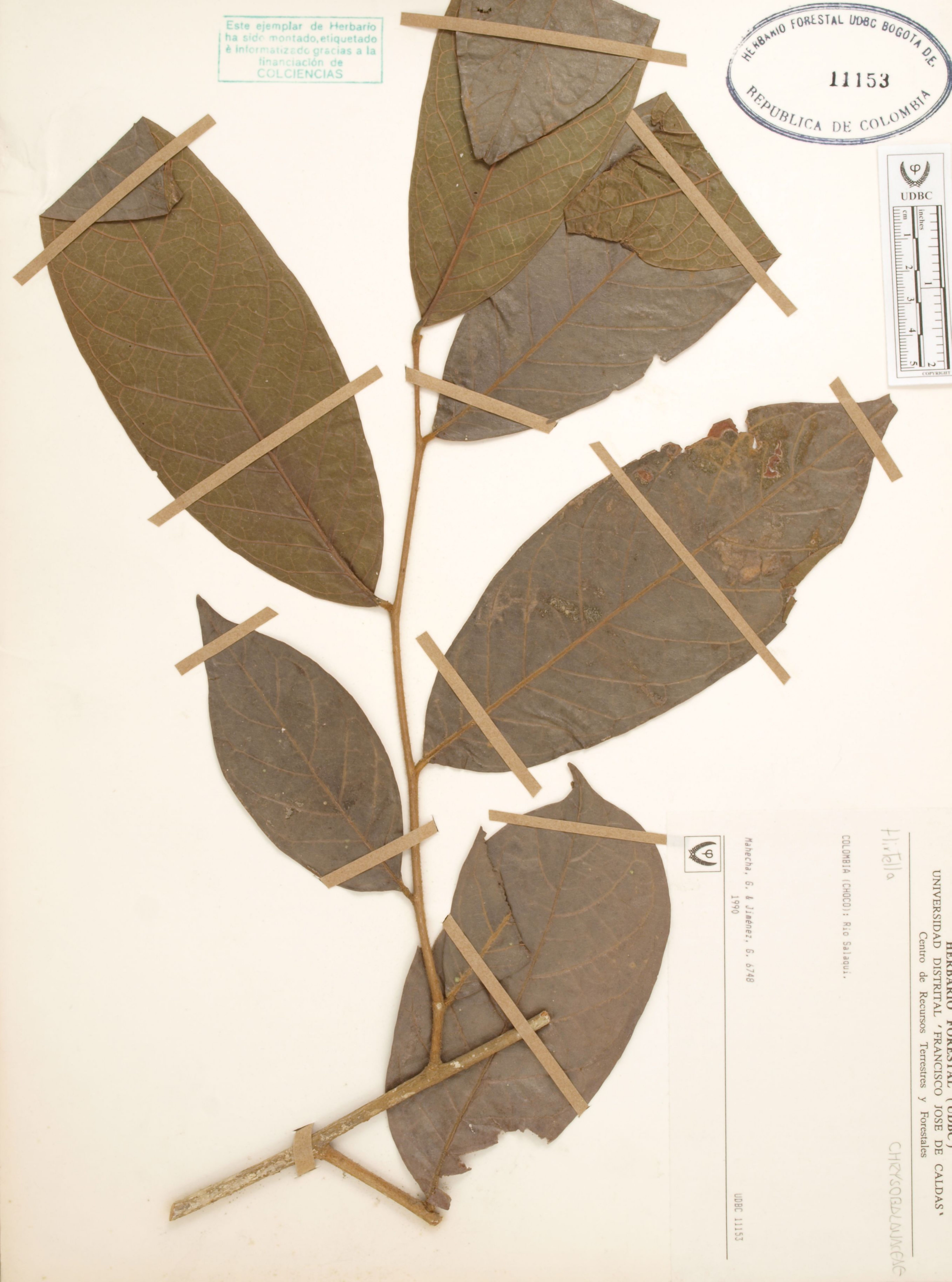 Fotografía del ejemplar Mahecha, G. 6748, determinado como Hirtella sp.