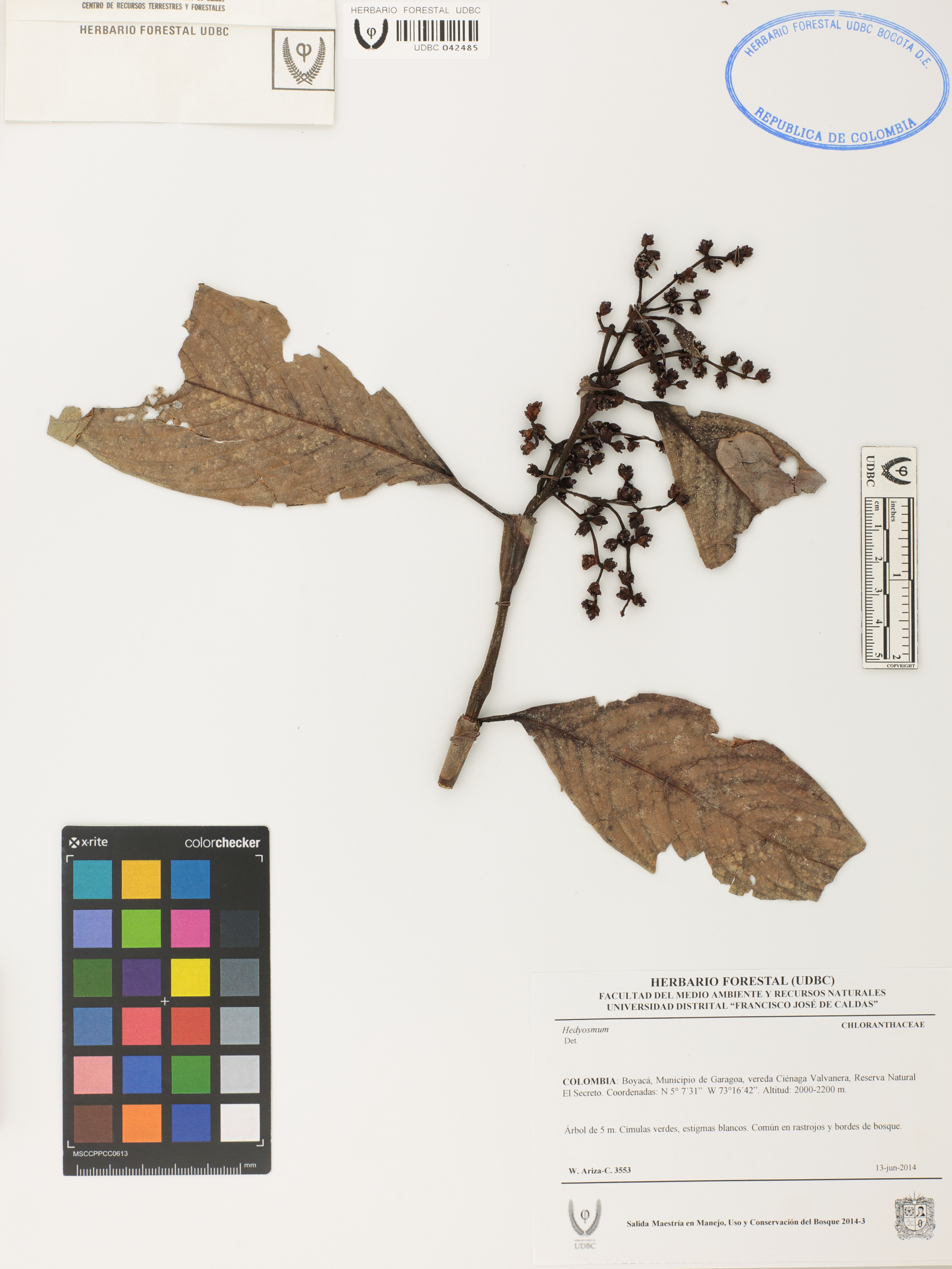 Fotografía del ejemplar Ariza-C., W. 3553, determinado como Hedyosmum sp.