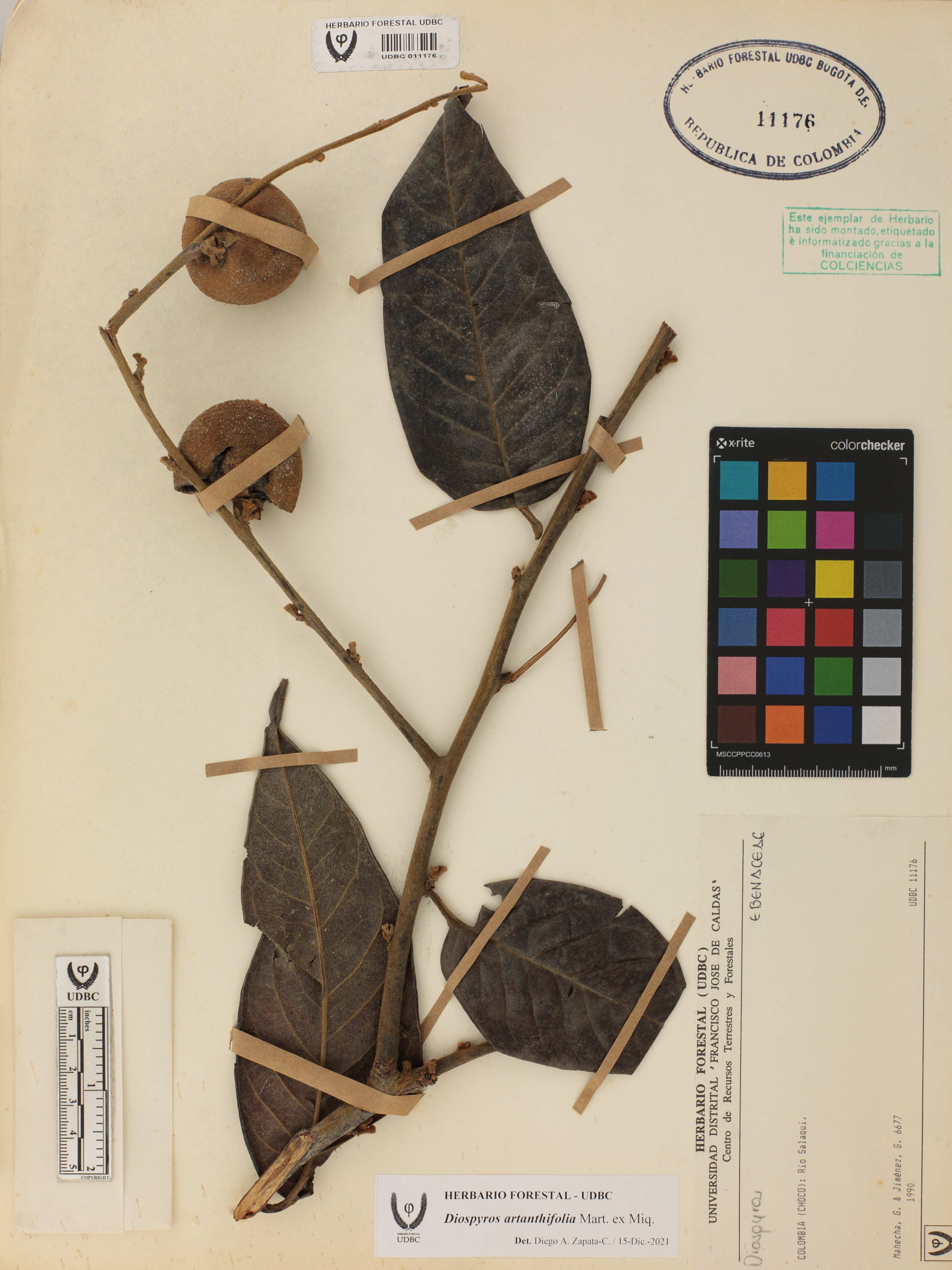 Fotografía del ejemplar Mahecha, G. 6677, determinado como Diospyros artanthifolia en el año 2021