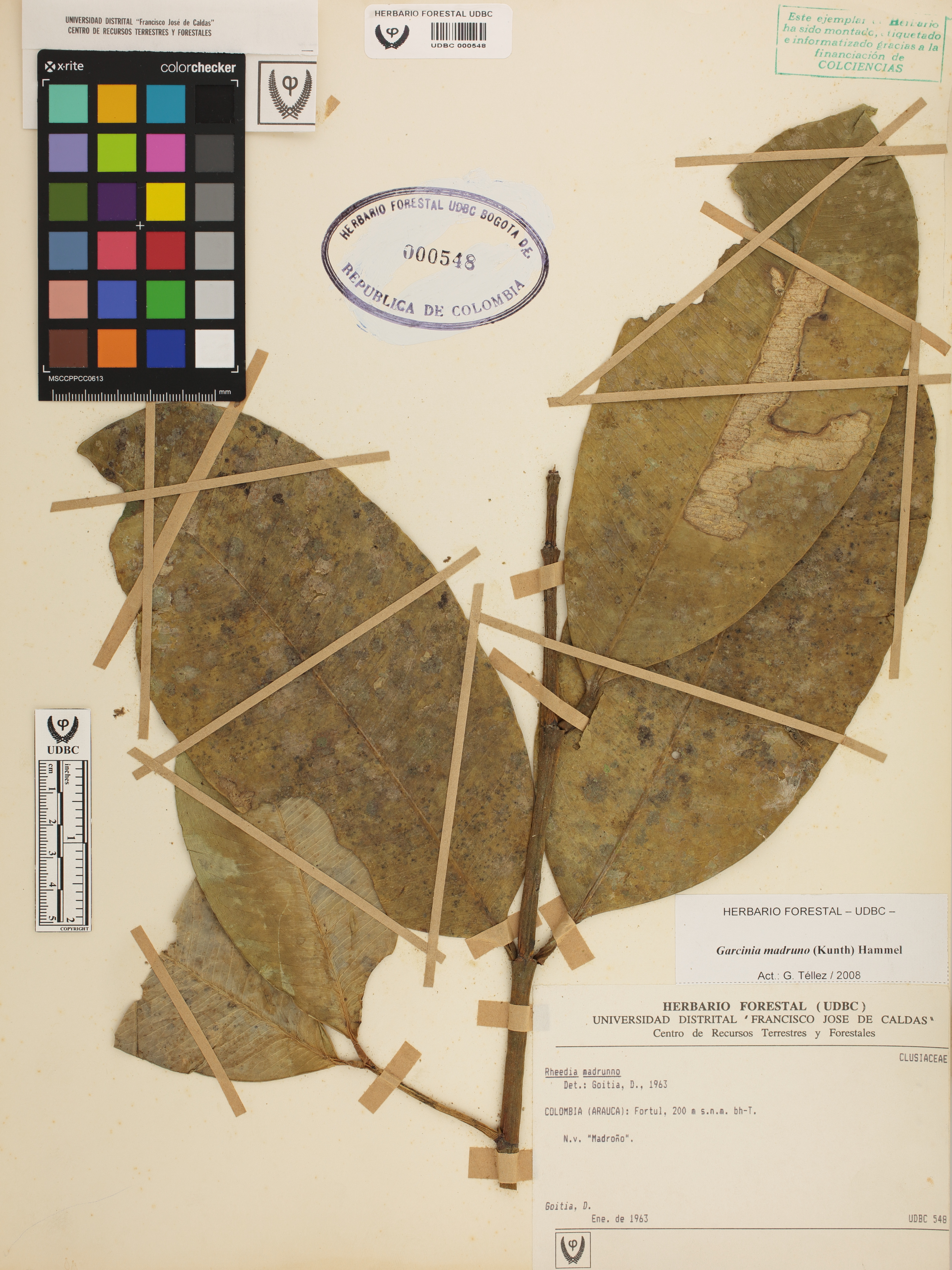Fotografía del ejemplar Goitia, D., determinado como Garcinia madruno en el año 1963