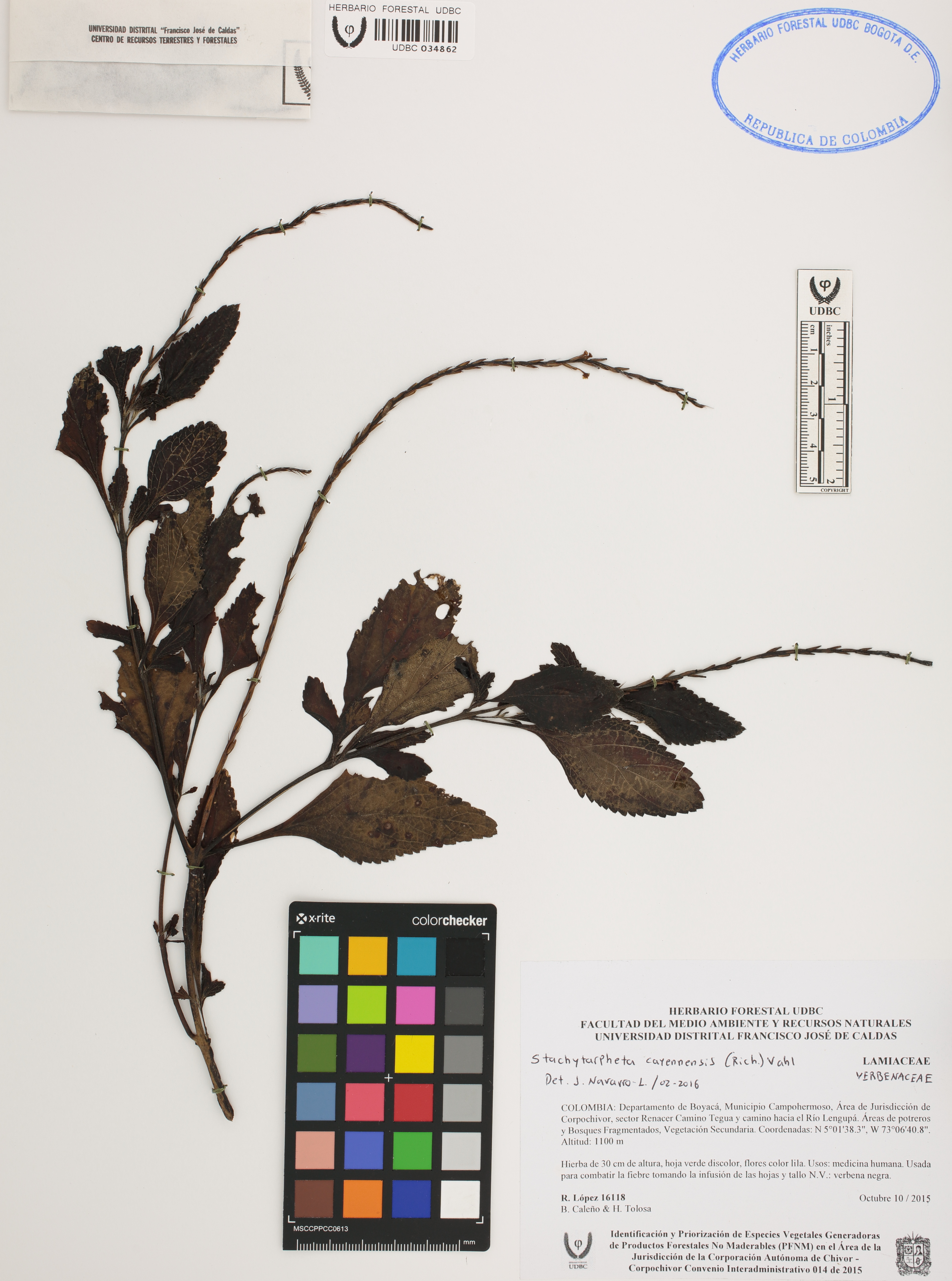 Fotografía del ejemplar López, R. 16118, determinado como Stachytarpheta cayennensis en el año 2016