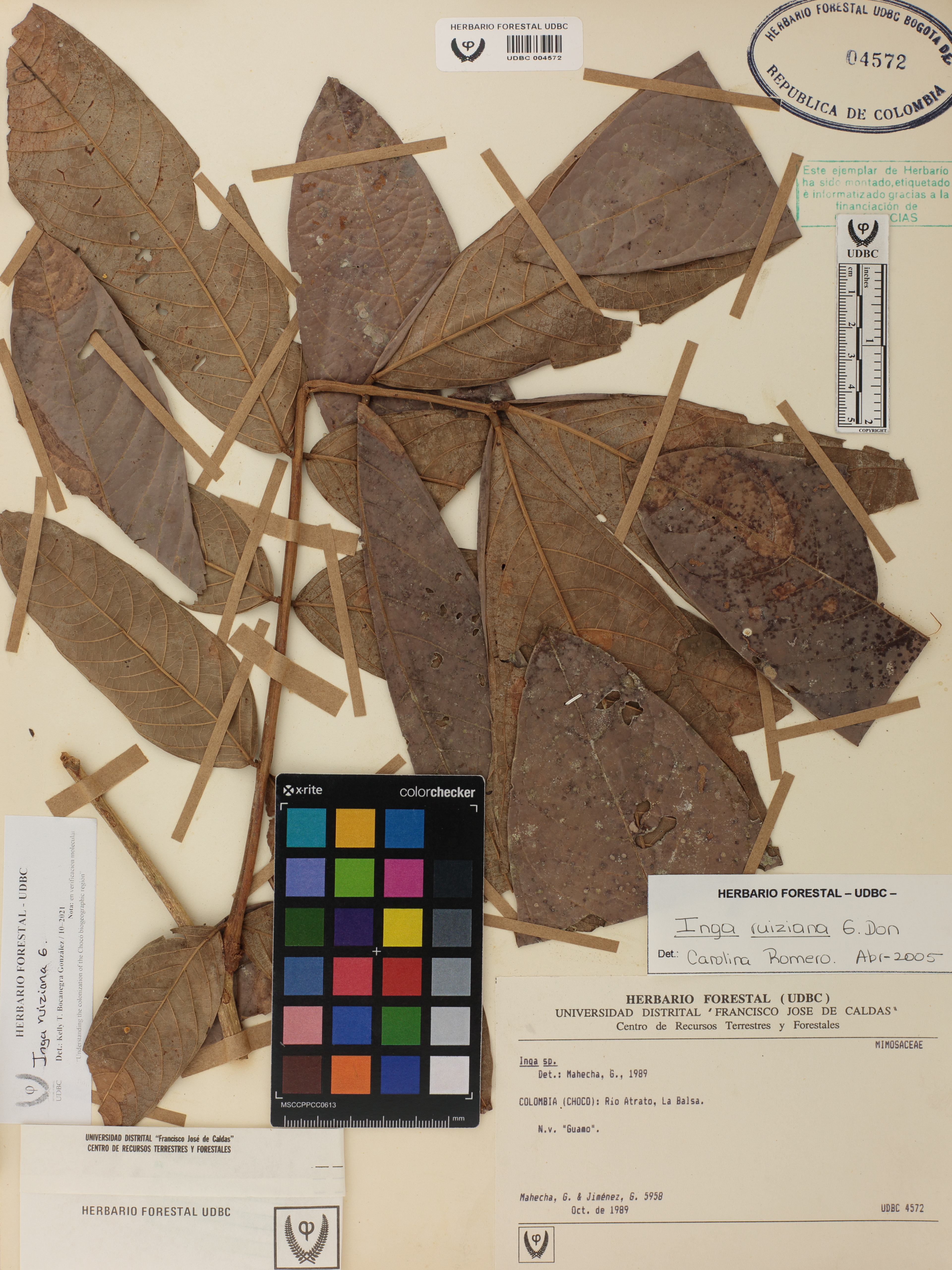 Fotografía del ejemplar Mahecha, G. 5958, determinado como Inga ruiziana en el año 2005