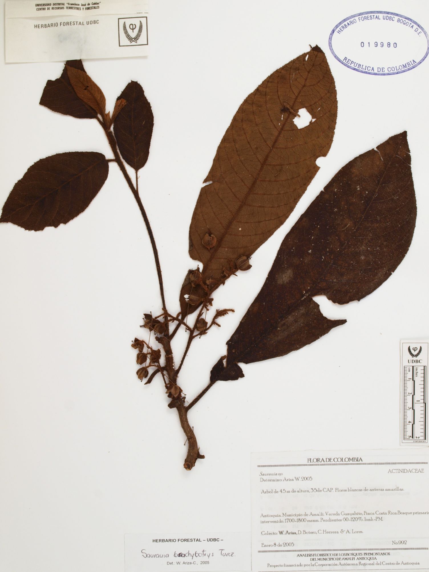 Fotografía del ejemplar Ariza, W. 992, determinado como Saurauia brachybotrys en el año 2005