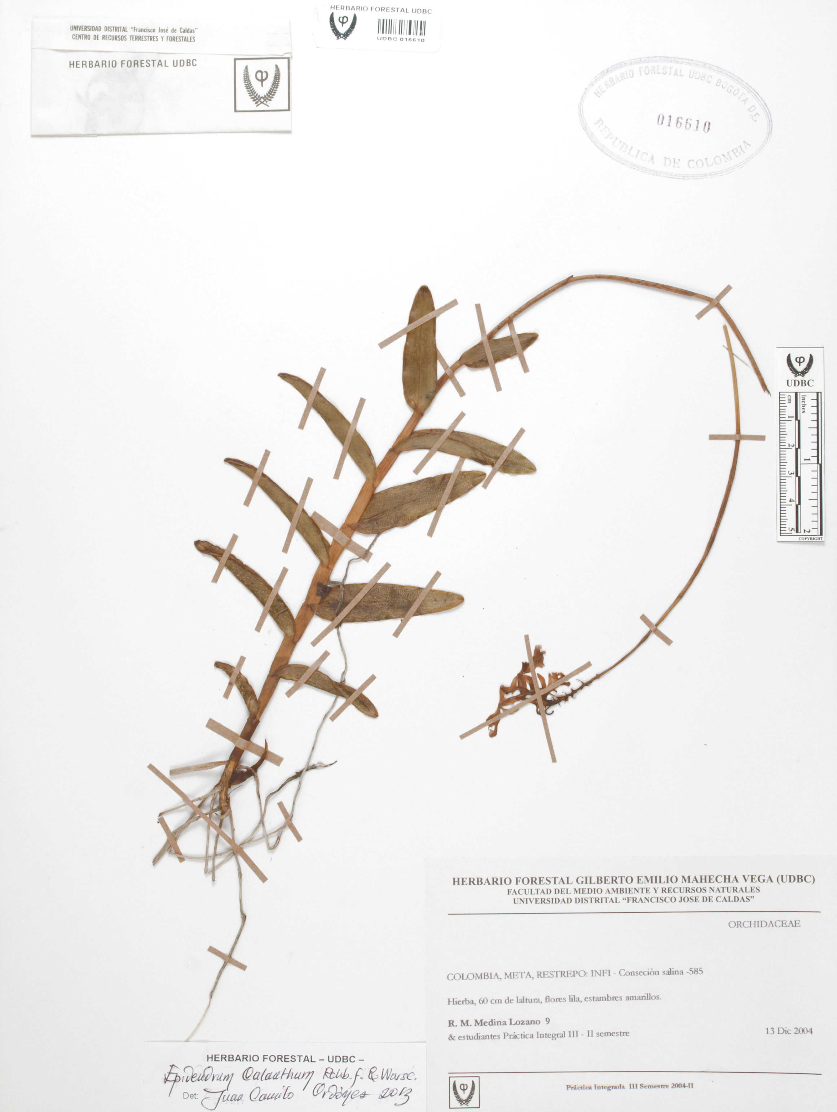 Fotografía del ejemplar Medina, R. 9, determinado como Epidendrum calanthum en el año 2013
