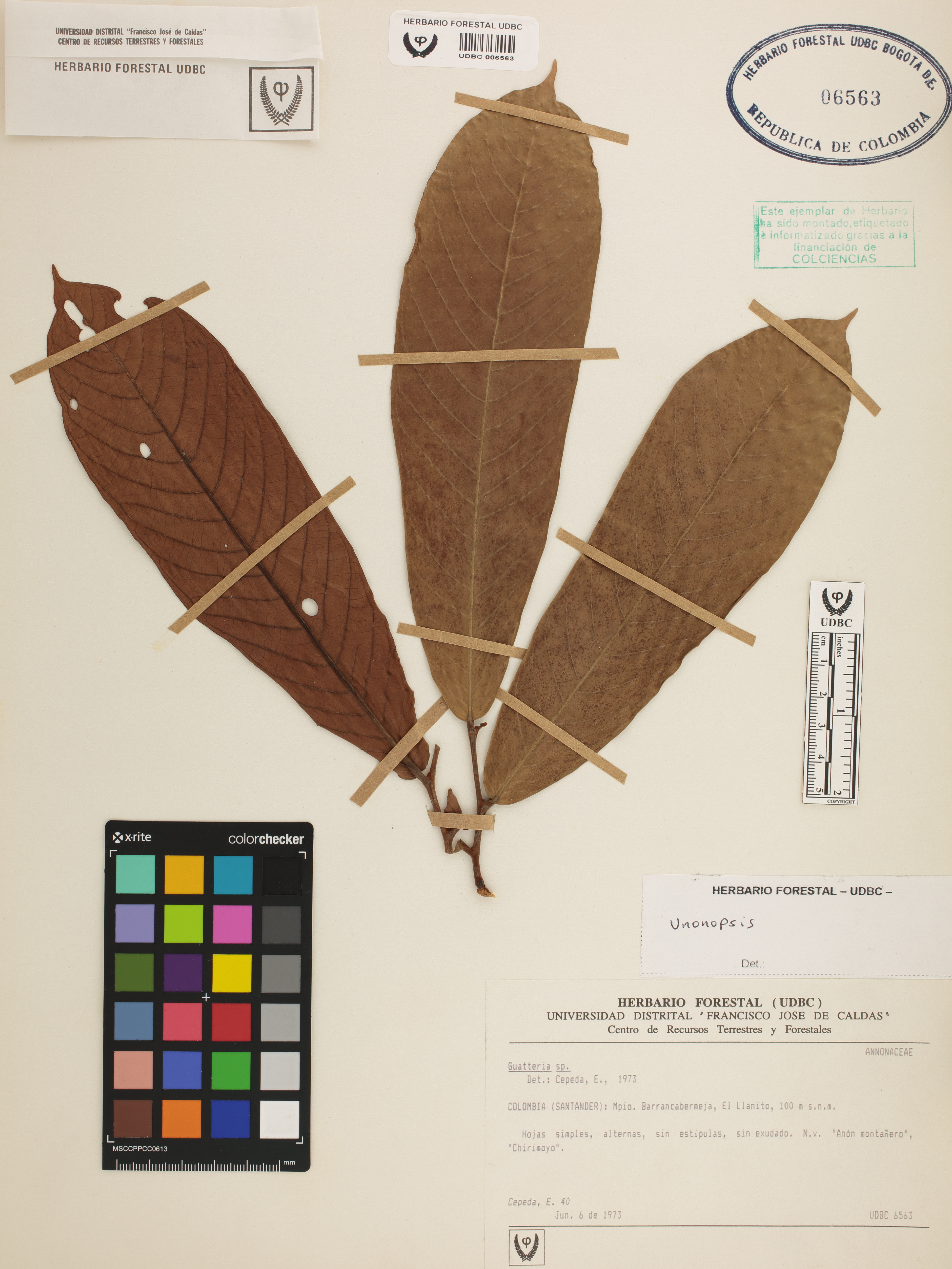 Fotografía del ejemplar Cepeda, E. 40, determinado como Unonopsis sp.