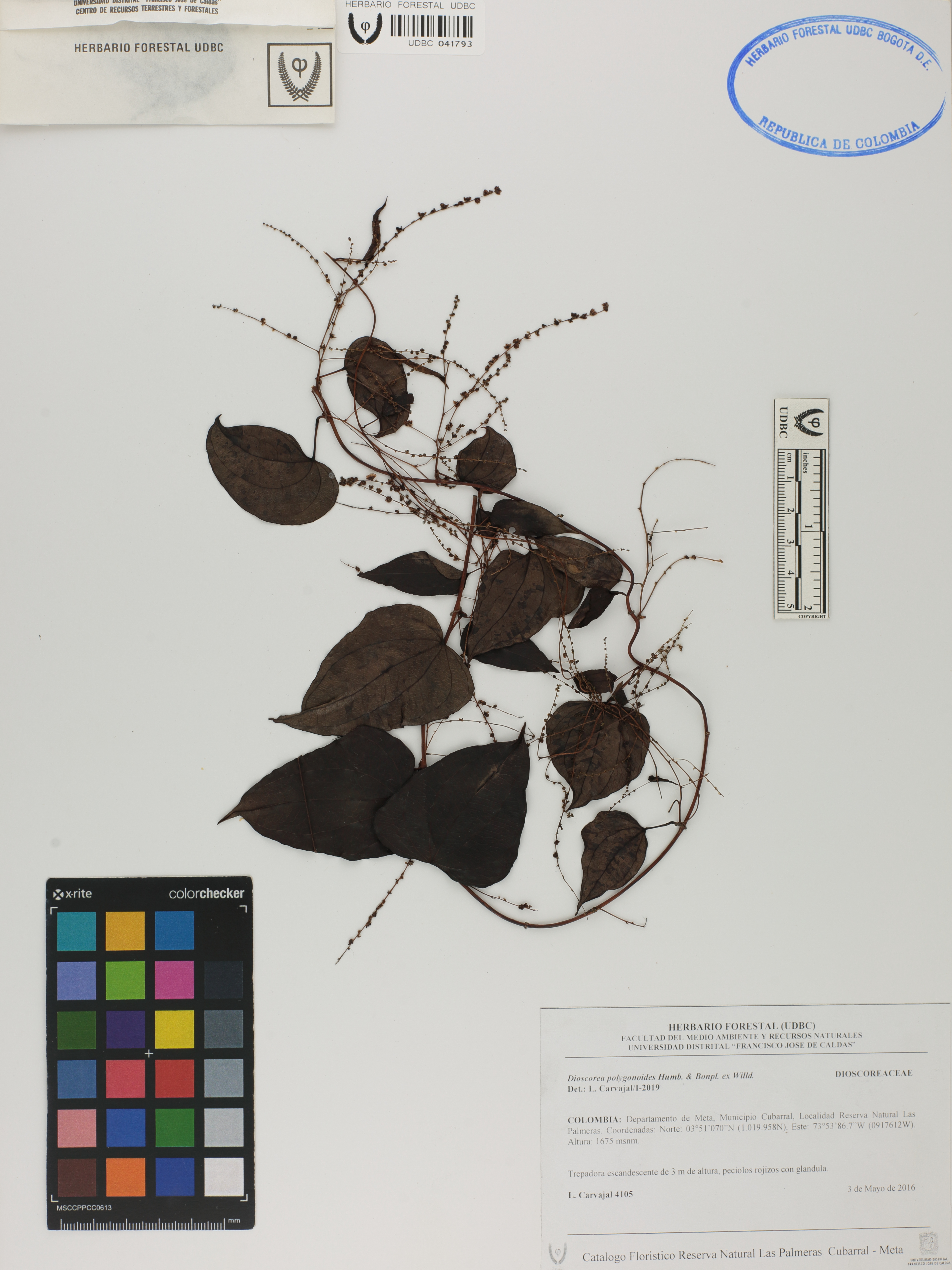 | dc.description | Fotografía del ejemplar Carvajal, L. 4105, determinado como Dioscorea polygonoides en el año 2019 | |