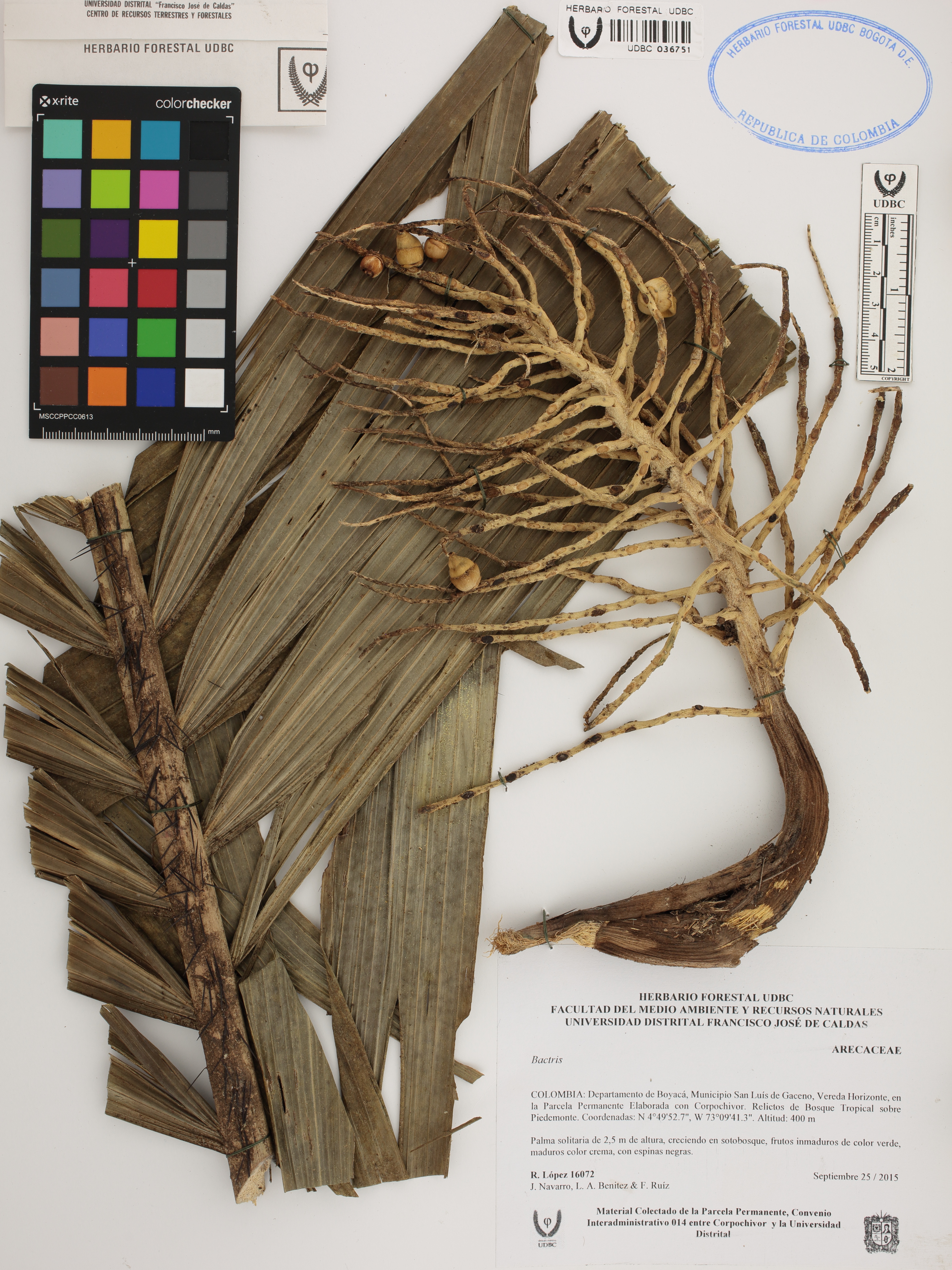 Fotografía del ejemplar López, R. 16072, determinado como Bactris sp.