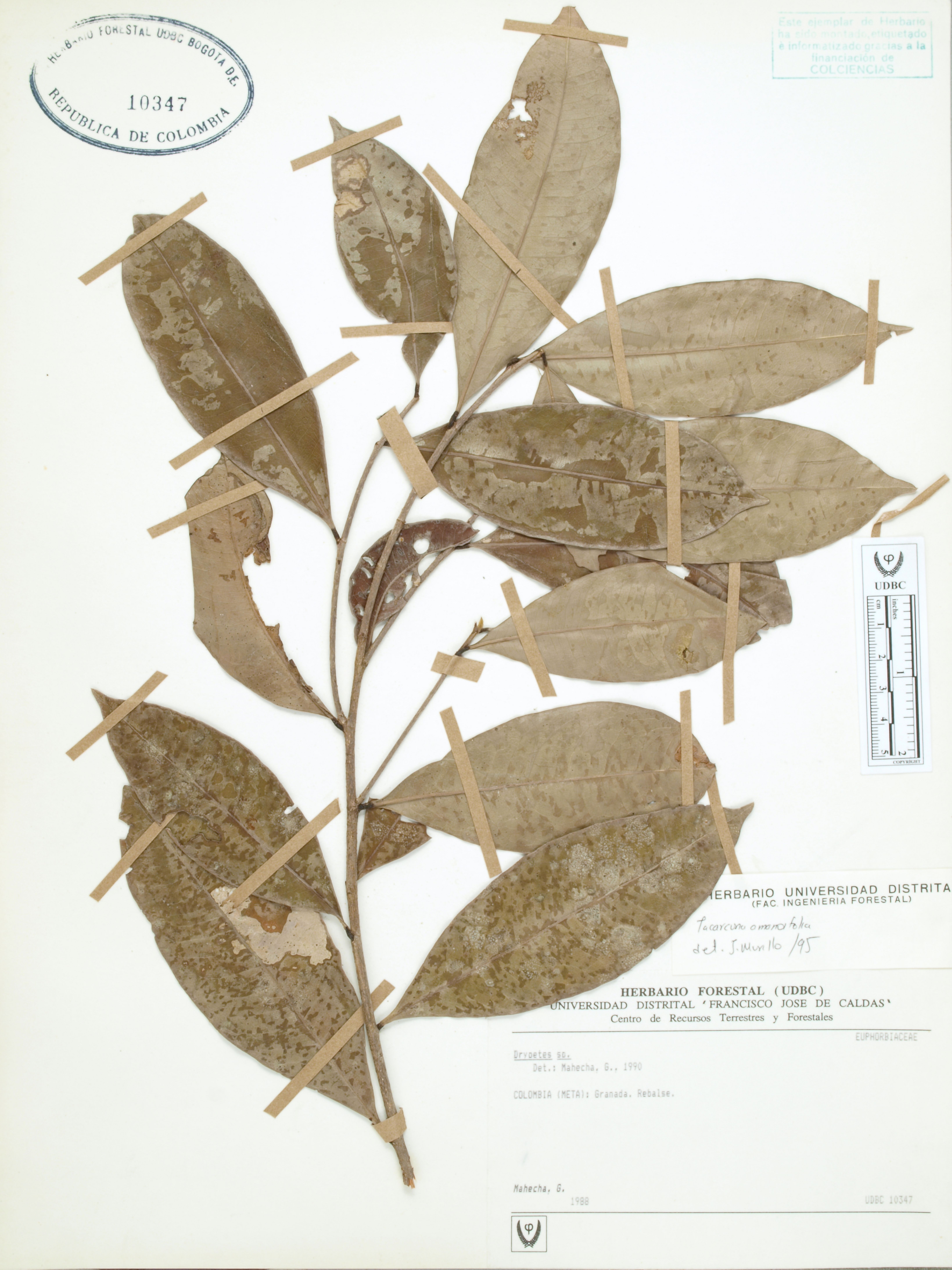 Fotografía del ejemplar Mahecha, G., determinado como Tacarcuna amanoifolia en el año 1995