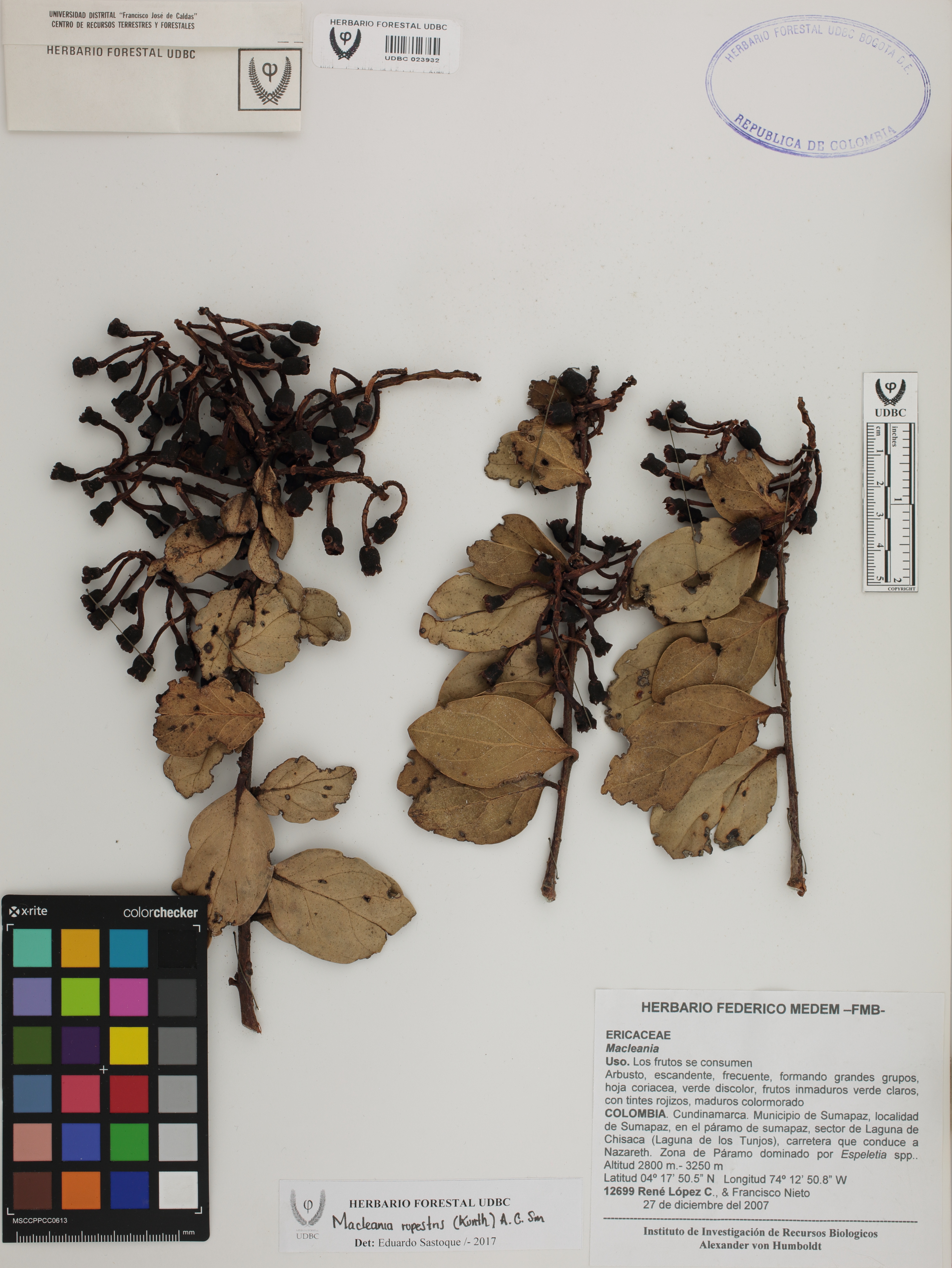 Fotografía del ejemplar López, R. 12699, determinado como Macleania rupestris en el año 2017