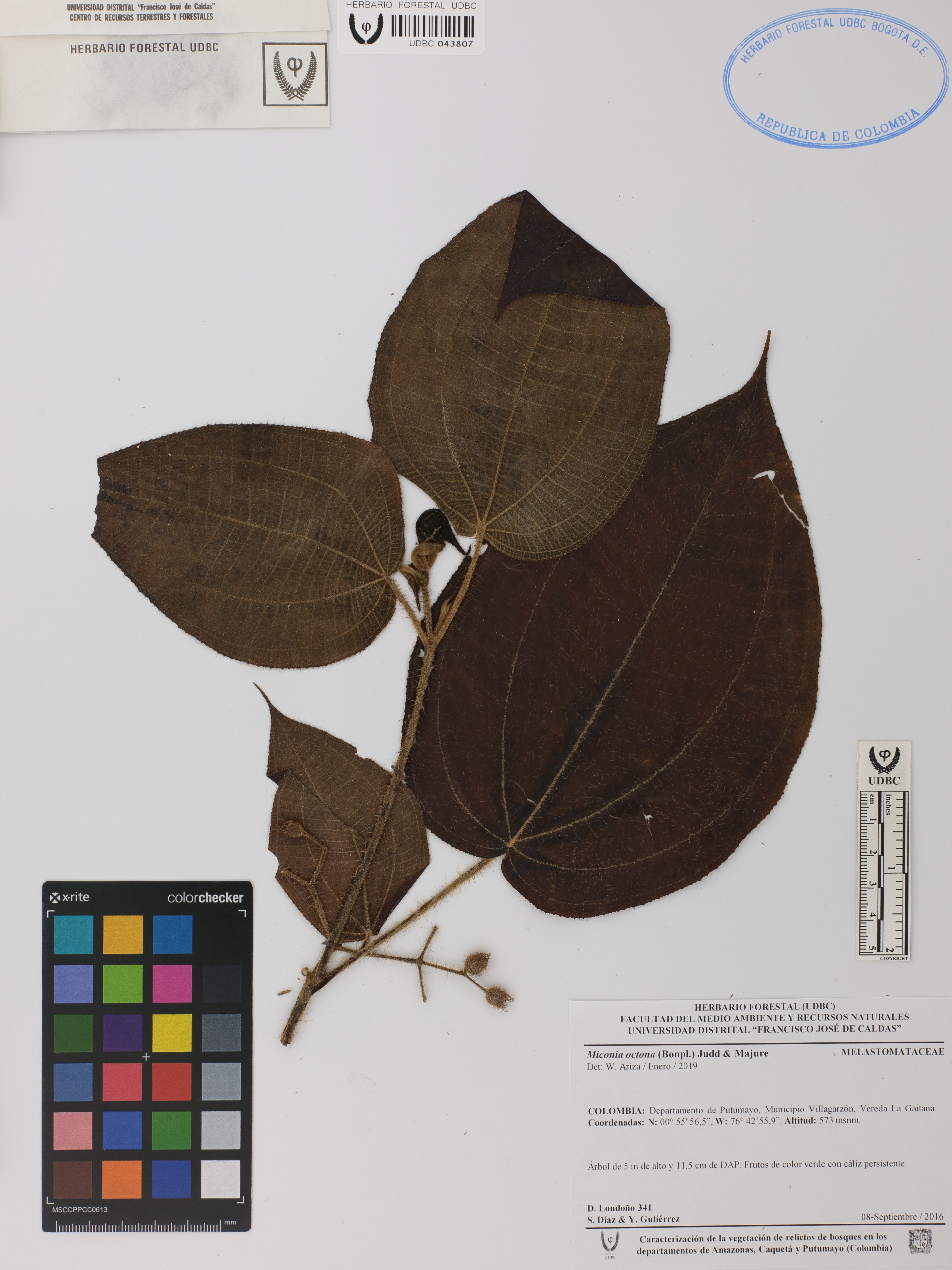 | dc.description | Fotografía del ejemplar Londoño, D. 341, determinado como Miconia octona en el año 2019 | |