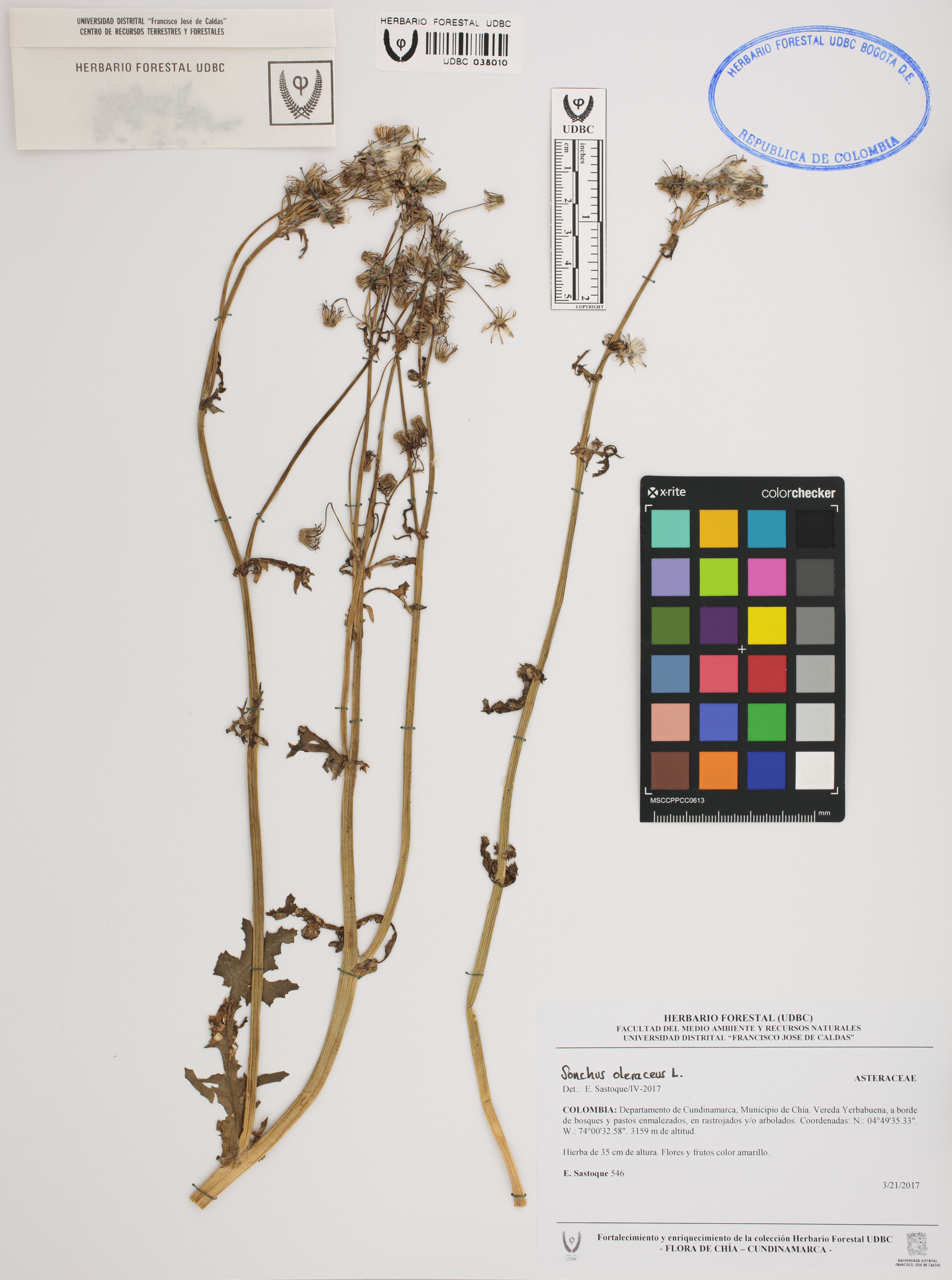 Fotografía del ejemplar Sastoque, E. 546, determinado como Sonchus oleraceus en el año 2017